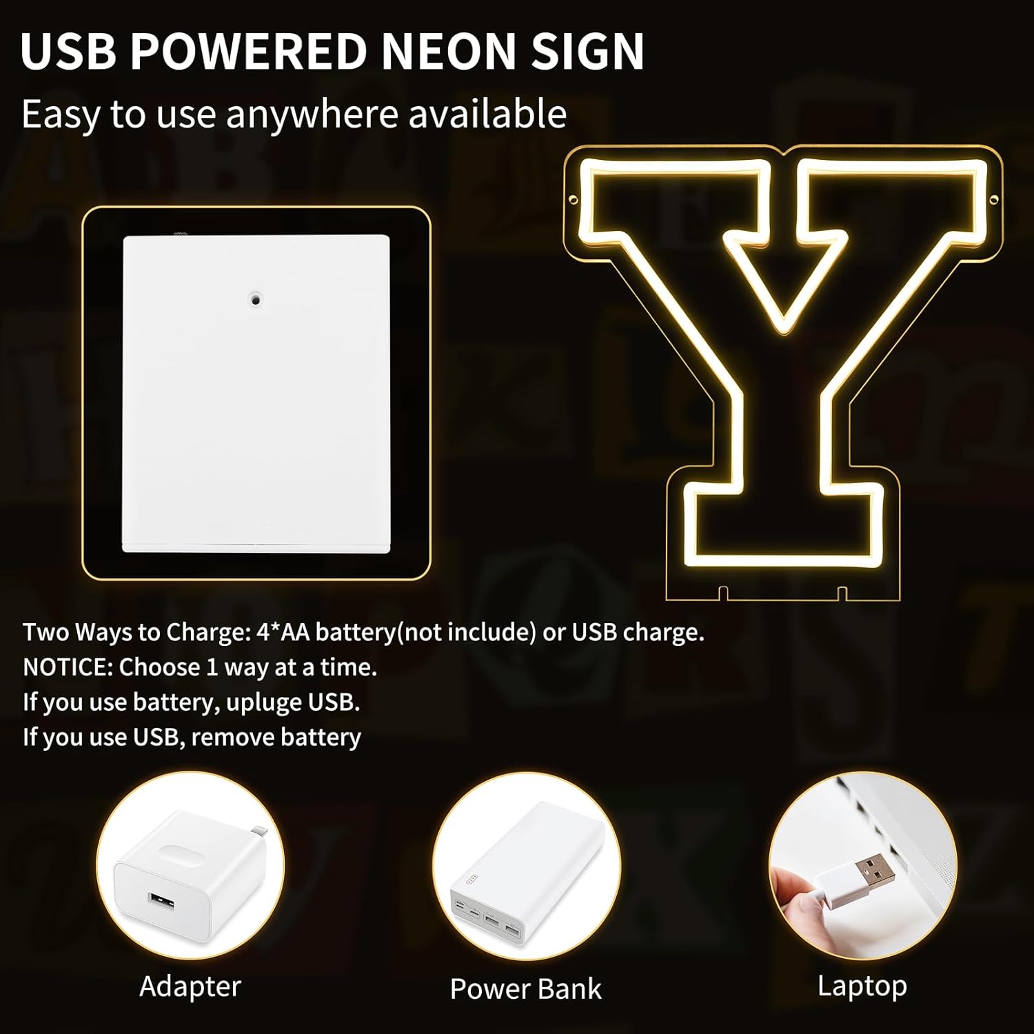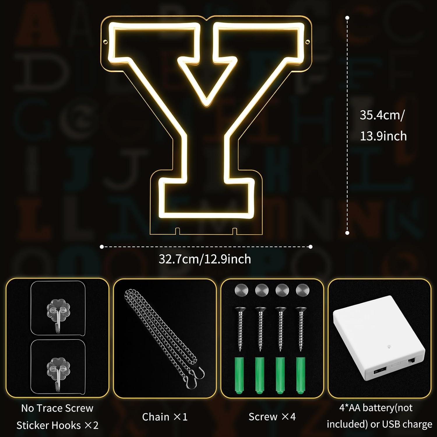 - 13.9" x 12.9" Letters Y Light Up Sign! Whether it’s a birthday bash, wedding, kids' room, home decor, or a special event, this Letter Y Neon Sign is the ultimate vibe booster! It’s also the perfect gift for Valentine’s Day, Christmas, or any occasion—your loved ones will adore it!
