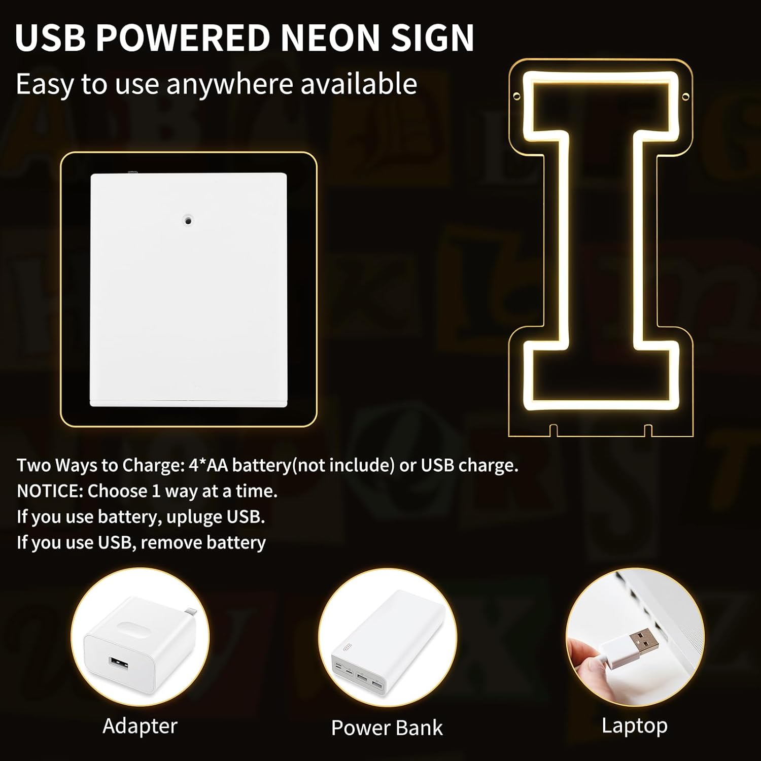 Light Up Letters I, Led Marquee Letter Lights Neon Sign, 13.9" Height Decorative Lighted Alphabet Number, Battery/USB Powered Led Letters Lights for Wedding, Birthday, Party, Christmas or Home Decor