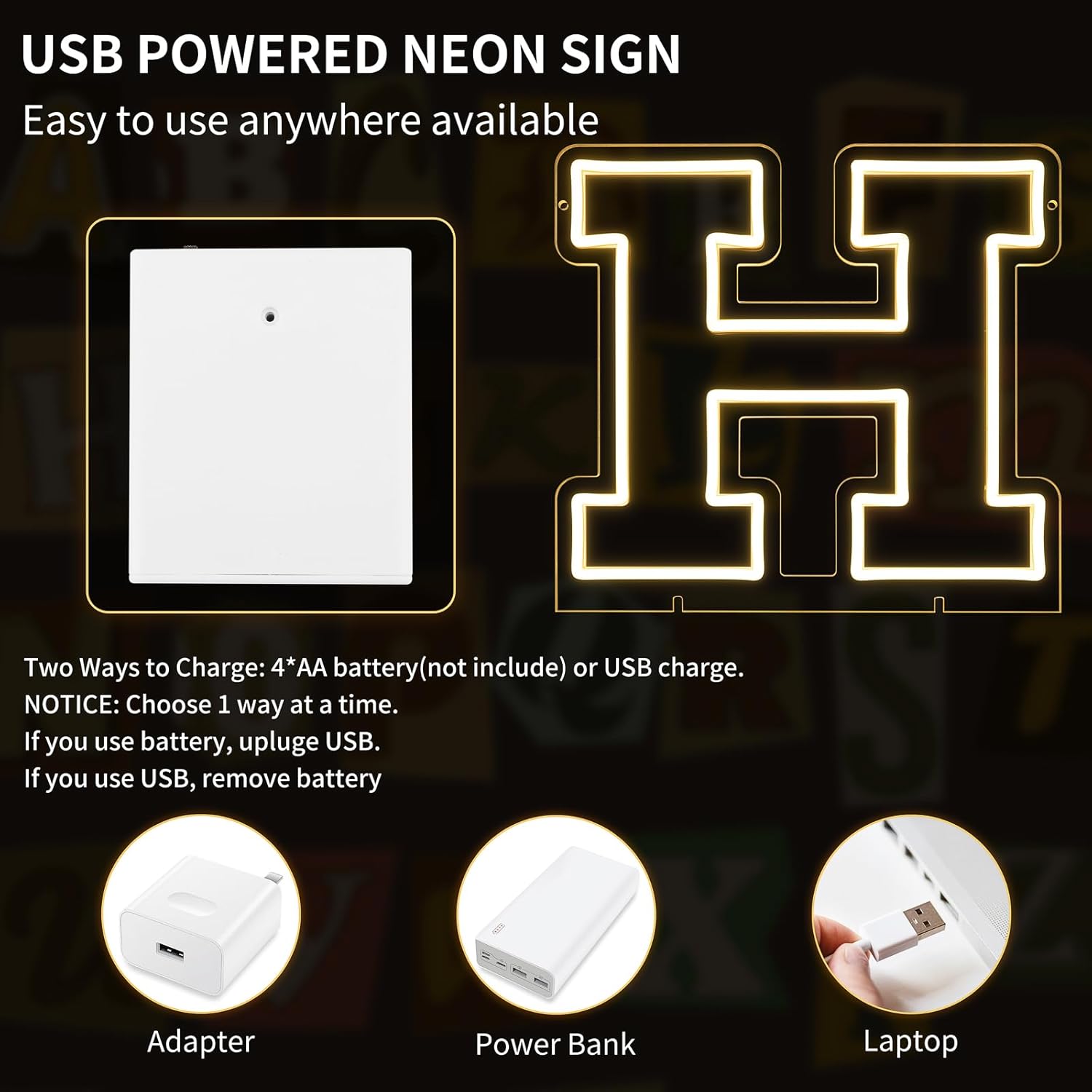 Light Up Letters H, Led Marquee Letter Lights Neon Sign, 13" Height Decorative Lighted Alphabet Number, Battery/USB Powered Led Letters Lights for Wedding, Birthday, Party, Christmas or Home Decor