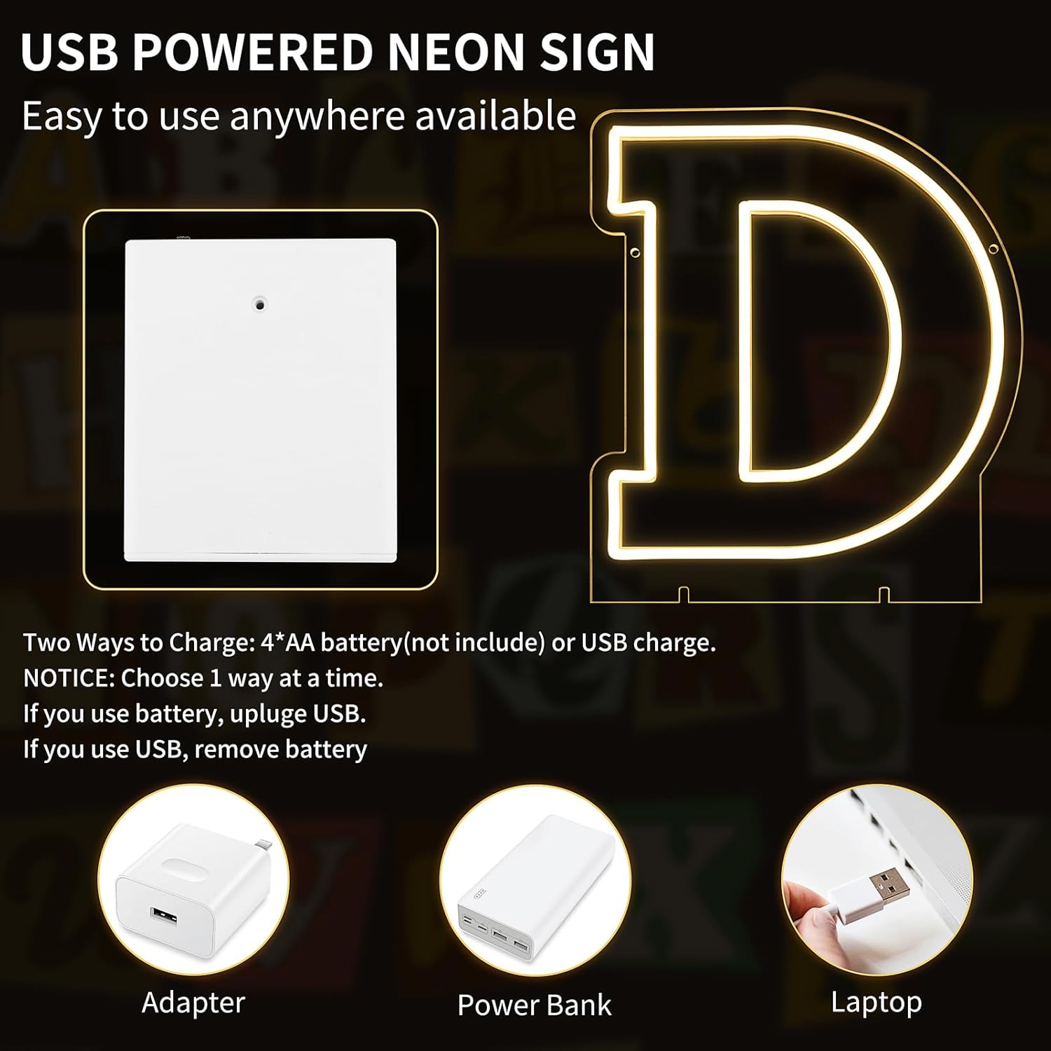 - 13.9" x 11.7" Letters D Light Up Sign! Whether it’s a birthday bash, wedding, kids' room, home decor, or a special event, this Letter D Neon Sign is the ultimate vibe booster! It’s also the perfect gift for Valentine’s Day, Christmas, or any occasion—your loved ones will adore it!