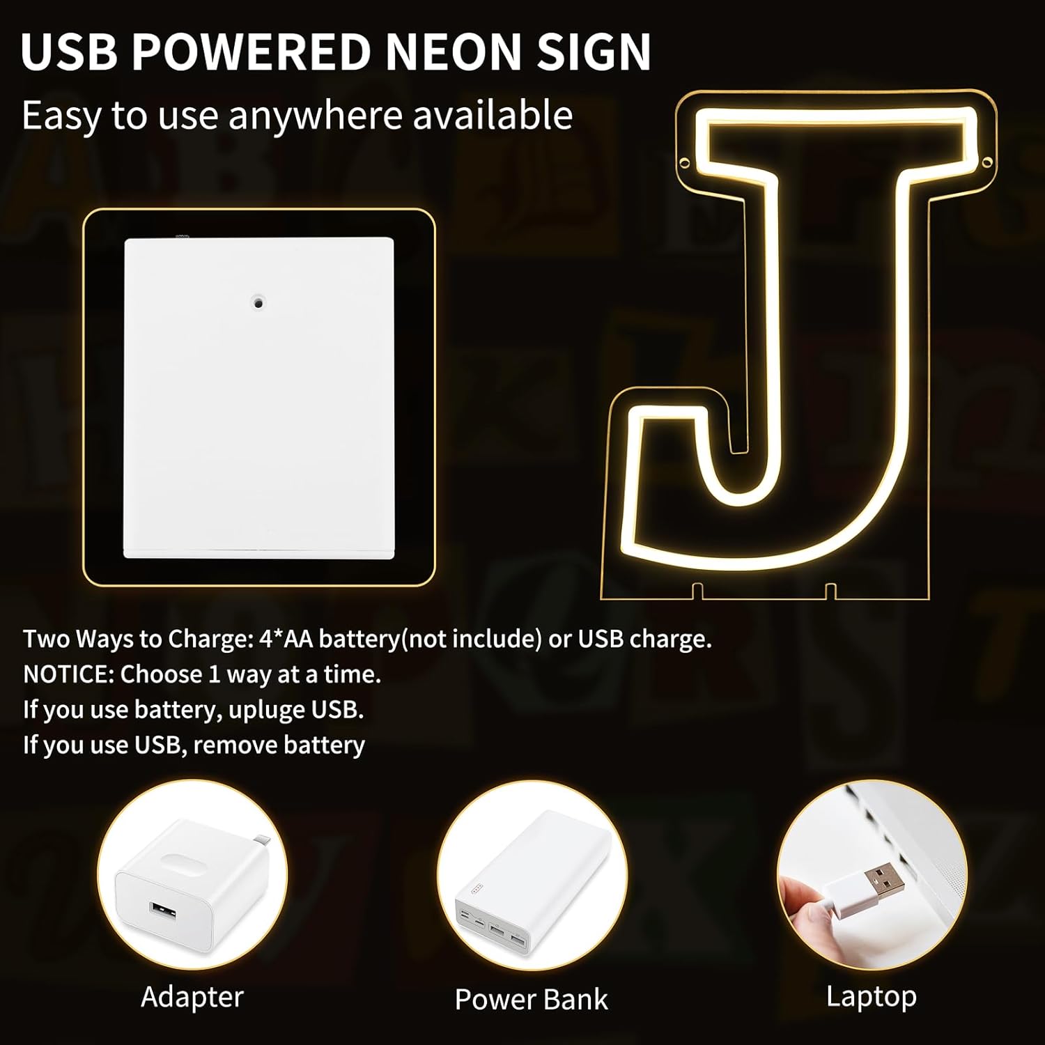 - 13.9" x 10.3" Letters J Light Up Sign! Whether it’s a birthday bash, wedding, kids' room, home decor, or a special event, this Letter J Neon Sign is the ultimate vibe booster! It’s also the perfect gift for Valentine’s Day, Christmas, or any occasion—your loved ones will adore it!