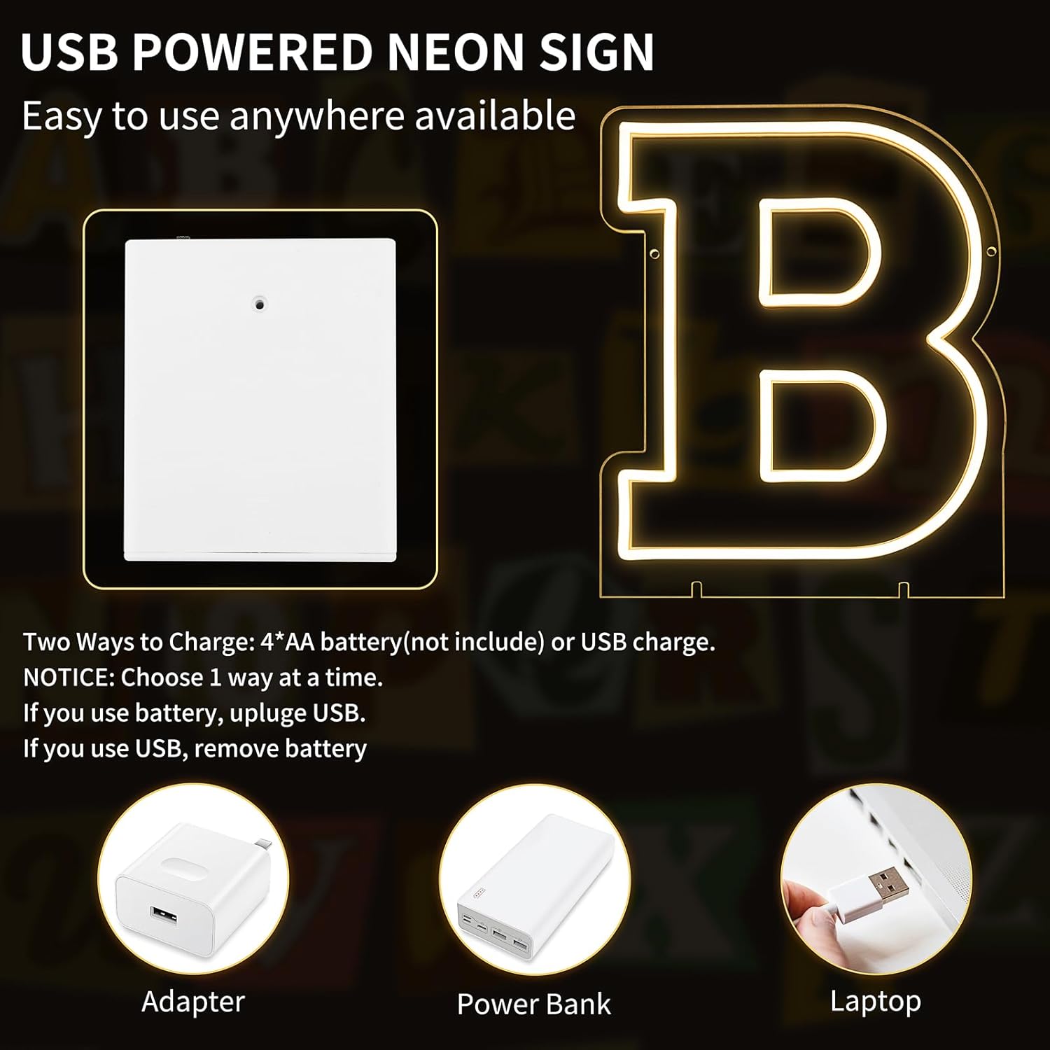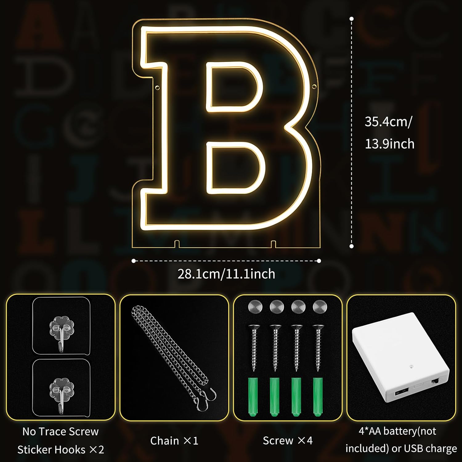 - 13.9" x 11.1" Letters B Light Up Sign! Whether it’s a birthday bash, wedding, kids' room, home decor, or a special event, this Letter B Neon Sign is the ultimate vibe booster! It’s also the perfect gift for Valentine’s Day, Christmas, or any occasion—your loved ones will adore it!