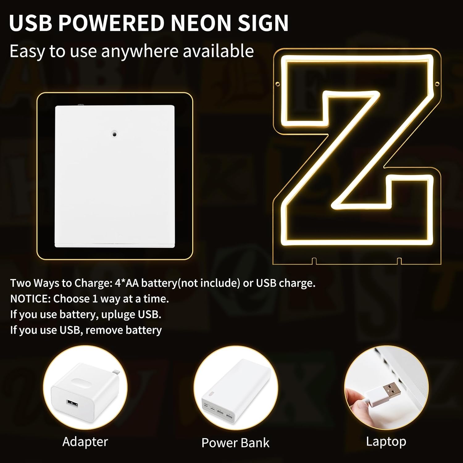 - 13.9" x 10.4" Letters Z Light Up Sign! Whether it’s a birthday bash, wedding, kids' room, home decor, or a special event, this Letter Z Neon Sign is the ultimate vibe booster! It’s also the perfect gift for Valentine’s Day, Christmas, or any occasion—your loved ones will adore it!