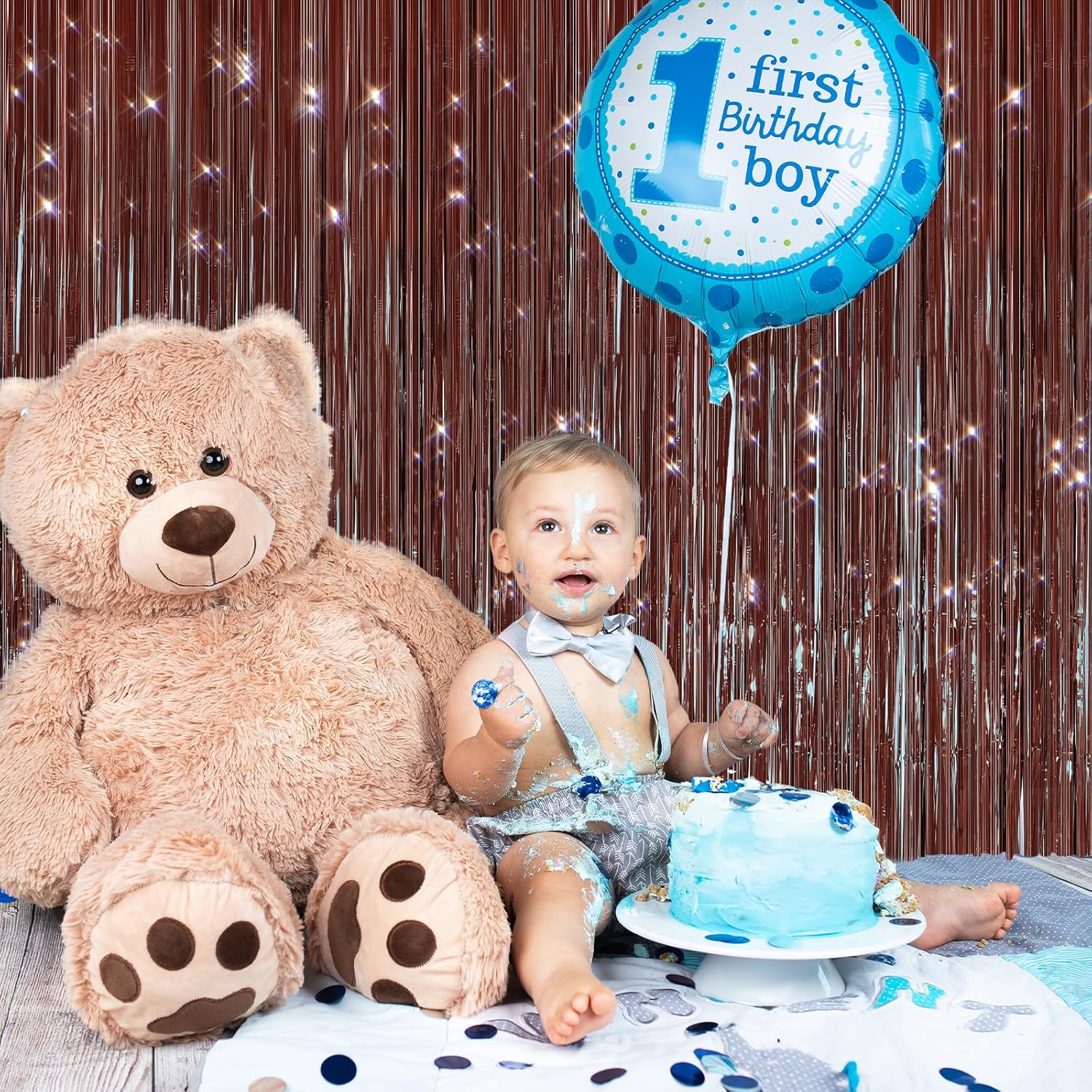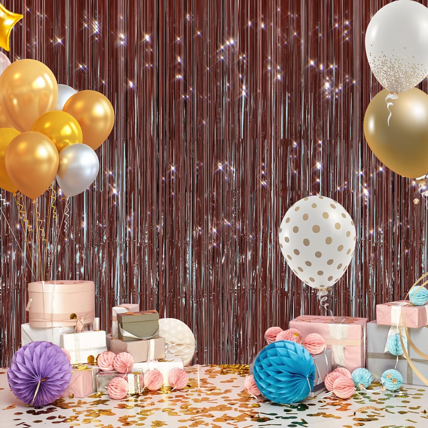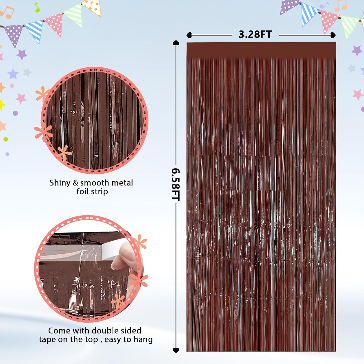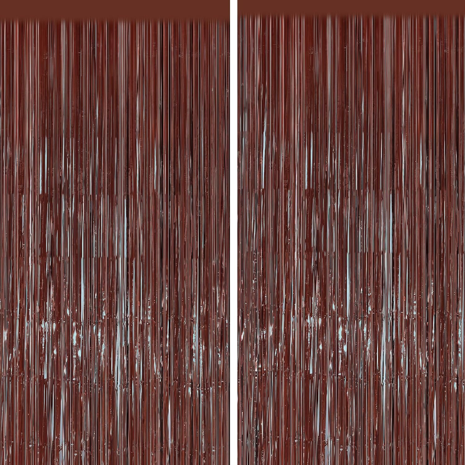 - Foil Fringe Backdrop: Includes 2 packs shiny Brown foil fringe curtains, enough quantity for your party decoration. Each pack curtains size is 3.3 ft x 6.58 ft, enough length for decorate your party. Perfect accessories for decorating doors and walls. for creating a stunning backdrop for any occasion. shimmer tinsel backdrop curtain, you can make a beautiful entrance door curtain or a photo booth backdrop for your guests. They are perfect for christmas party.