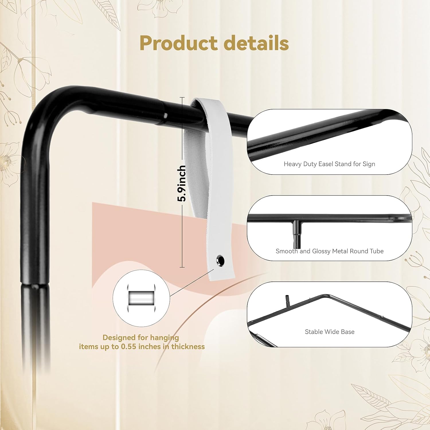 - Heavy Duty Easel Stand: Crafted from heavy-duty iron, our hangging sign stand are built to withstanding wind and rain. The wide and sturdy base will keep the signage upright and secure, ensuring your event goes smoothly