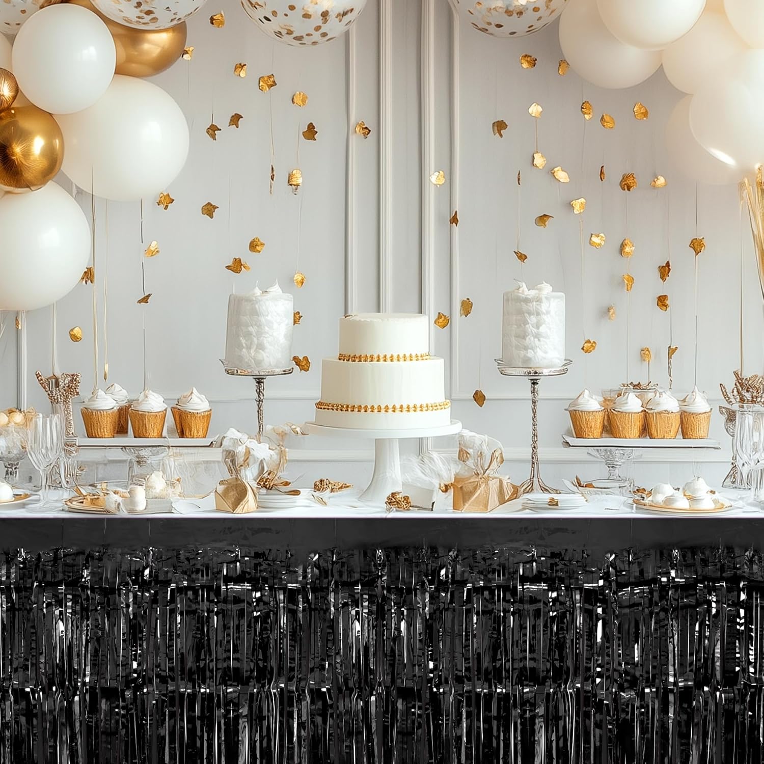 3 Pack Black Dark Purple Orange Table Skirts, 29x108" Metallic Foil Tinsel Fringe Table Skirt for Rectangle Tables Streamer Curtains Backdrop, Party Decorations for Birthdays, Weddings, Holidays