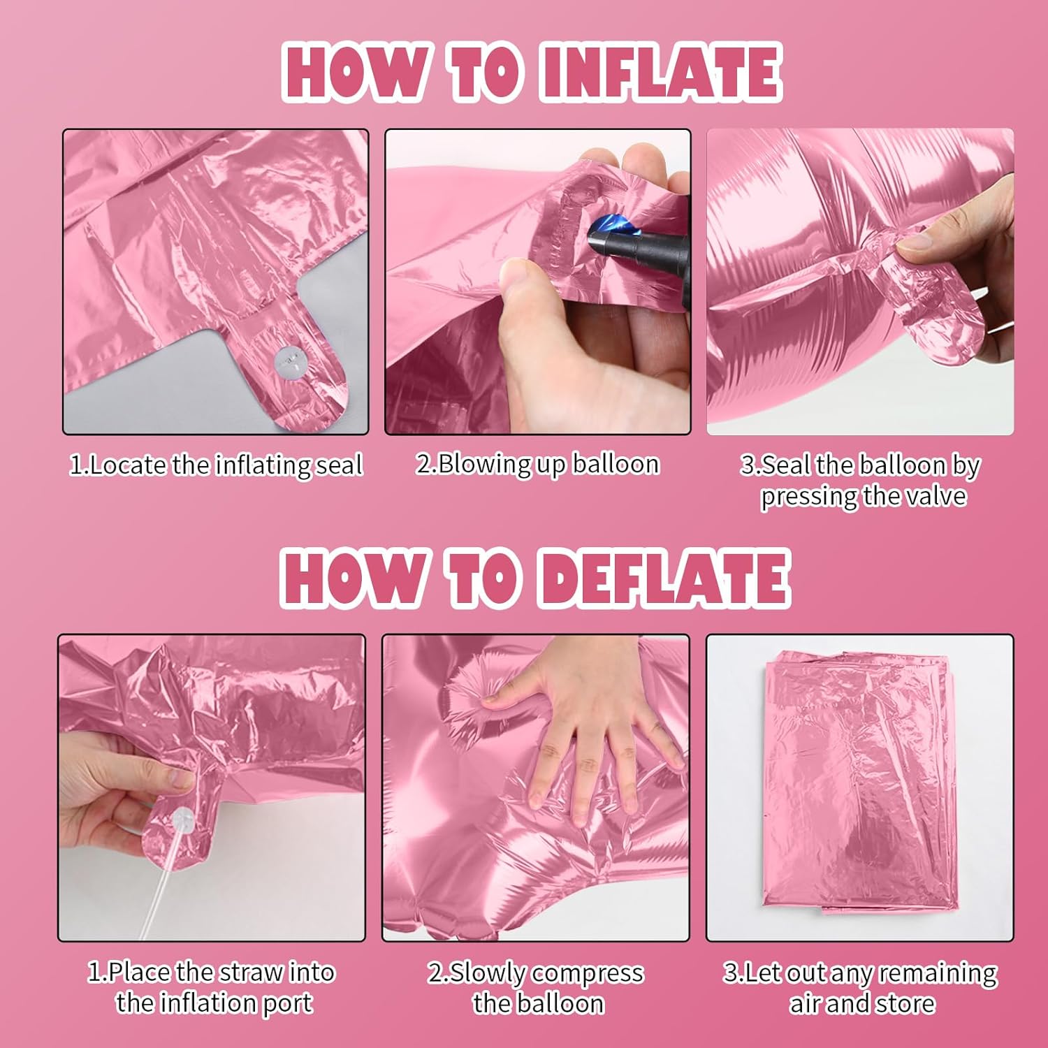 - Reusable Foil Balloons: The Pink star balloon set is completely reusable. Avoid excessive friction and sharp objects when using it. Use a straw to deflate and flatten it after event, and it will still be a shining decoration at the party next time