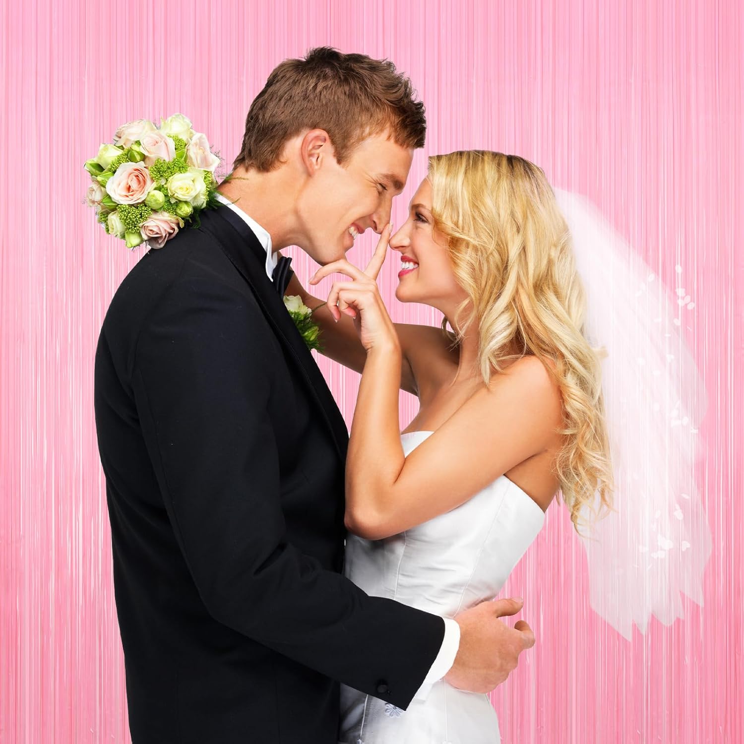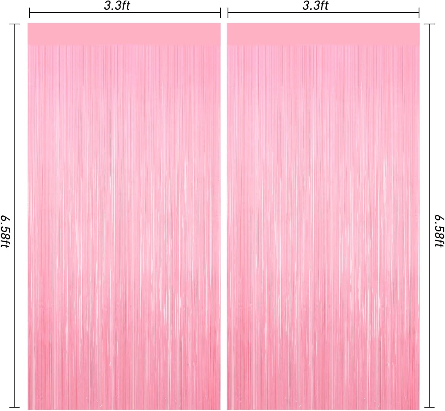 2Pack Foil Curtain Pastel Pink Backdrop Streamers Metallic Tinsel Fringe Curtains Photo Booth Props for Birthday Wedding Engagement Bachelorette Christmas Celebration Valentines Party Decorations
