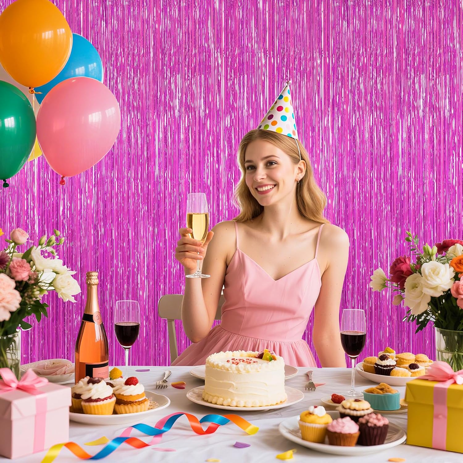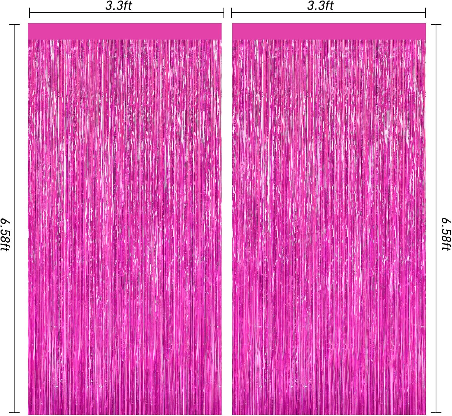 2 Pack Hot Pink Backdrop Curtain, Door Streamers, Party Streamers Decorations Rose Red Birthday Wedding Decorations Foil Fringe Photo Backdrop Party Supplies Fiesta Grad Theme Christmas Decorations