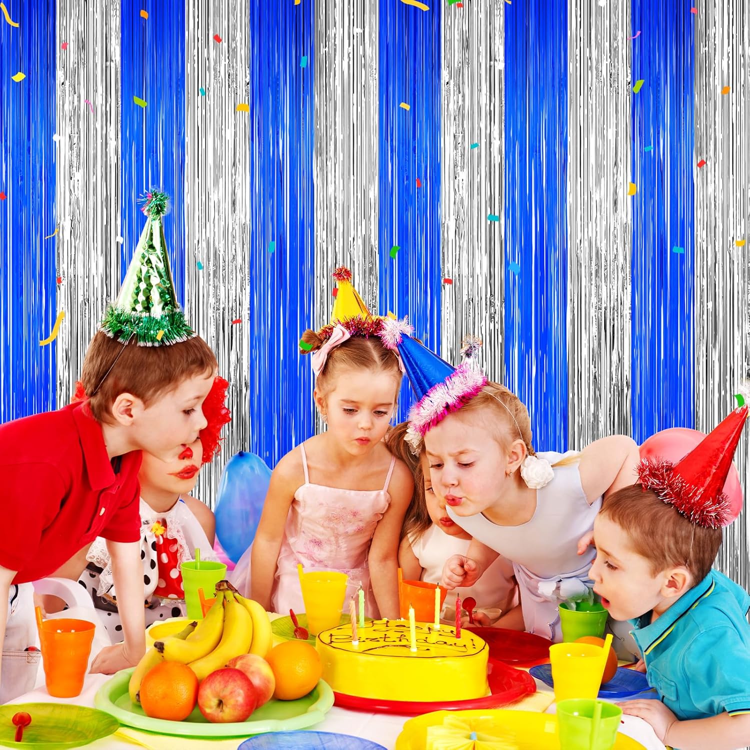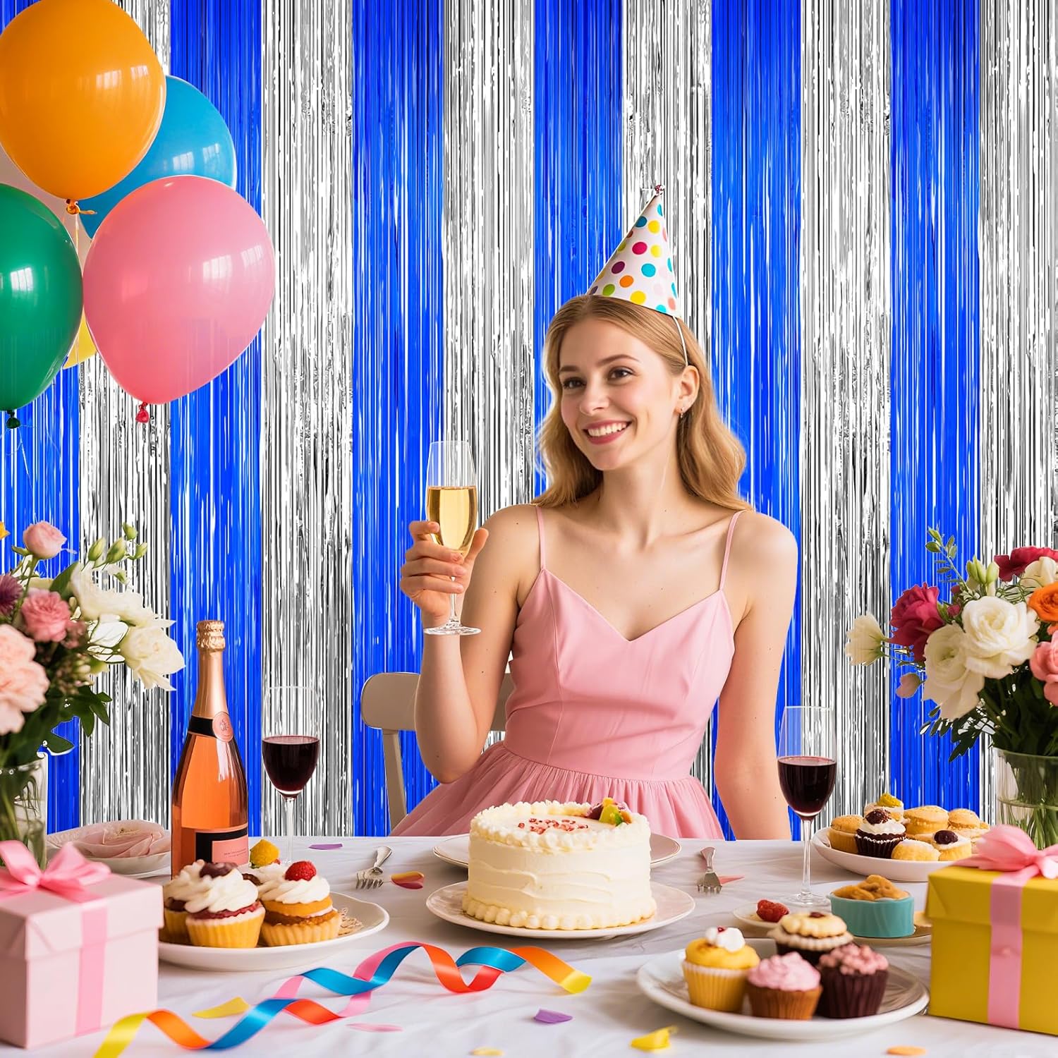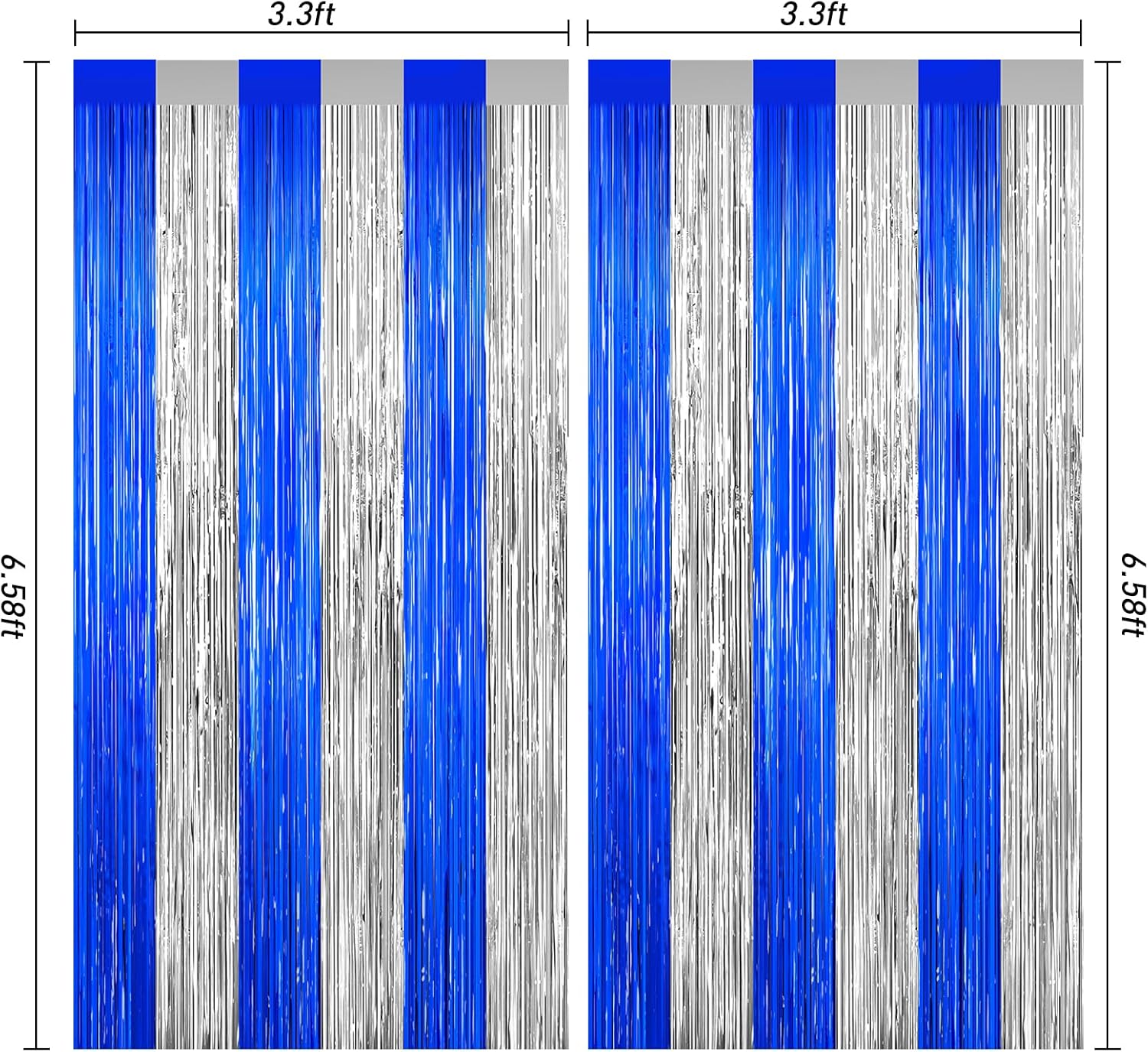 - ๐๐ฉ๐ฉ๐ฅ๐ข๐๐๐๐ฅ๐ ๐๐๐๐ง๐๐ฌ:These Blue Silver photo backdrop decorations for graduation party supplies for any theme party Likes birthday, baby shower, wedding, engagement, bridal shower, bride shower, bachelorette, holiday celebration, Independence day, halloween, graduation, anniversary, hollywood party, nightmare, homecoming, christmas or new year, carnival. Mexican Fiesta Cinco De Mayo, hollywood party, guest will love them. Blue Silver tinsel backdro ideal for photo booths