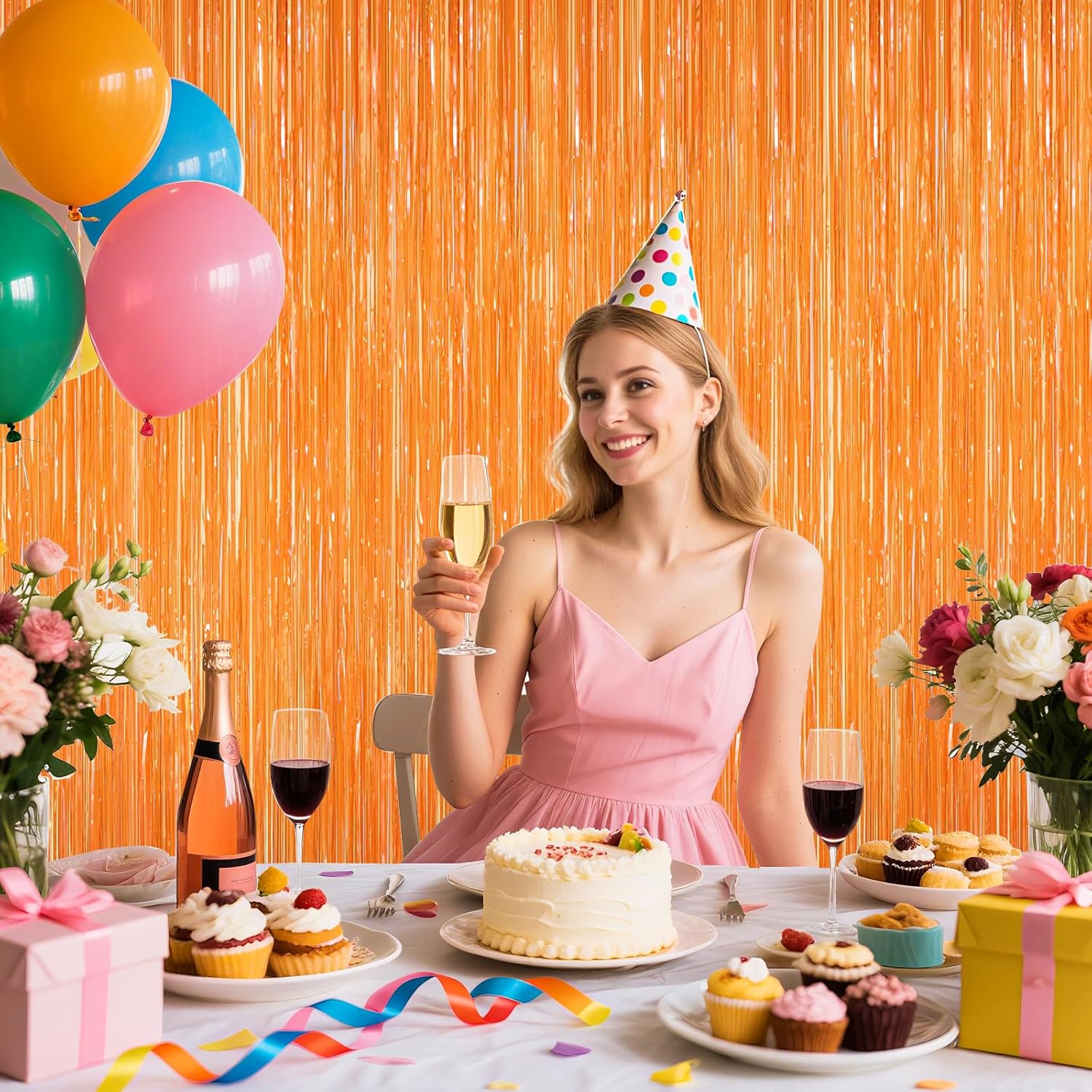 - ๐๐ฉ๐ฉ๐ฅ๐ข๐๐๐๐ฅ๐ ๐๐๐๐ง๐๐ฌ:These orange color photo backdrop decorations are wonderful finishing touch for any theme party such as birthday, baby shower, wedding, engagement, bridal shower, bride shower, bachelorette, holiday celebration, halloween, graduation, anniversary, hollywood party, nightmare, homecoming, christmas or new year, carnival. Mexican Fiesta Cinco De Mayo etc, Your guest will love them and take photo with them. orange color tinsel backdro ideal for photo booths