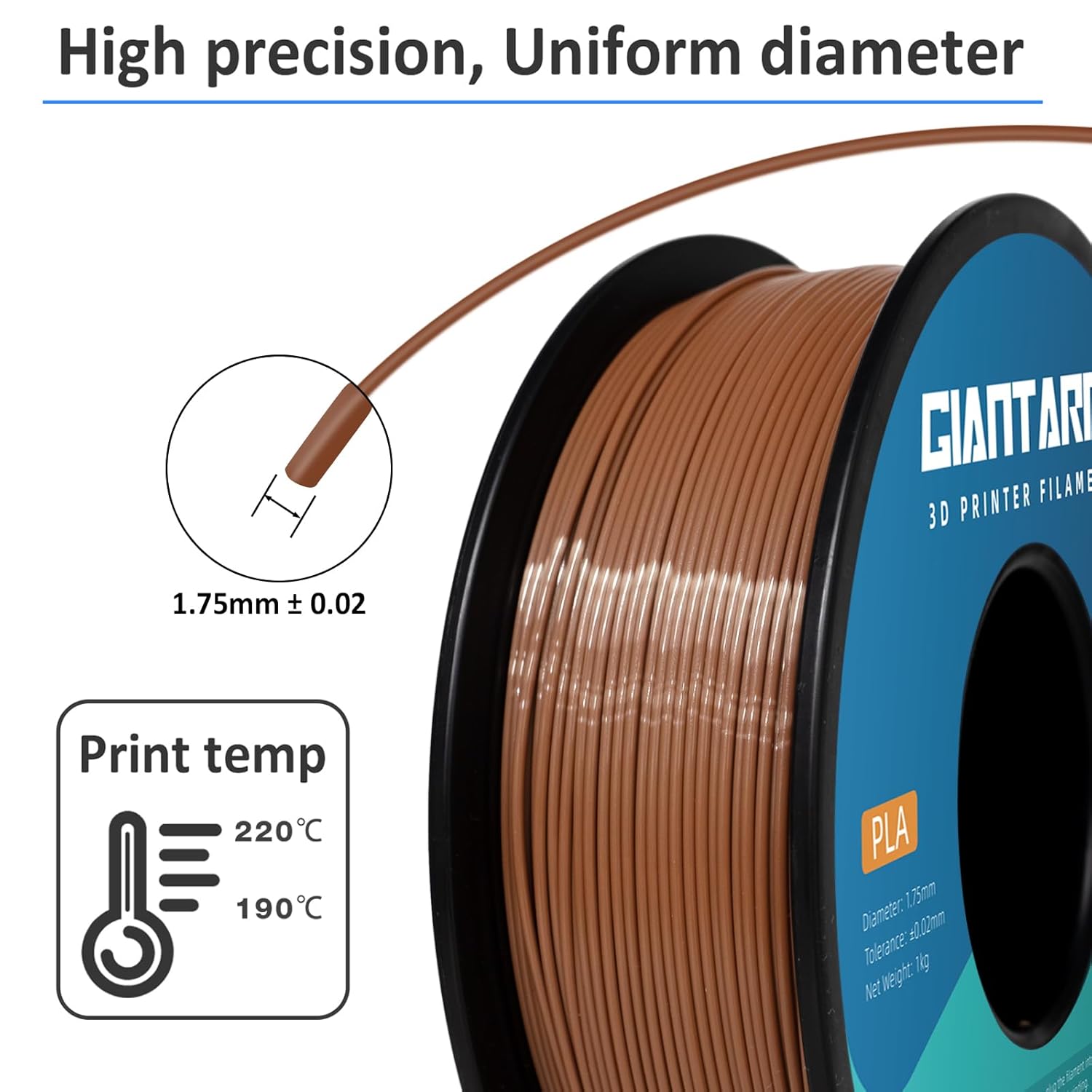 GIANTARM PLA Filament,Brown 3D Printer Filament 1Kg(2.2lbs) Spool,1.75mm Dimension Accuracy +/- 0.03mm,Fit Most FDM 3D Printers