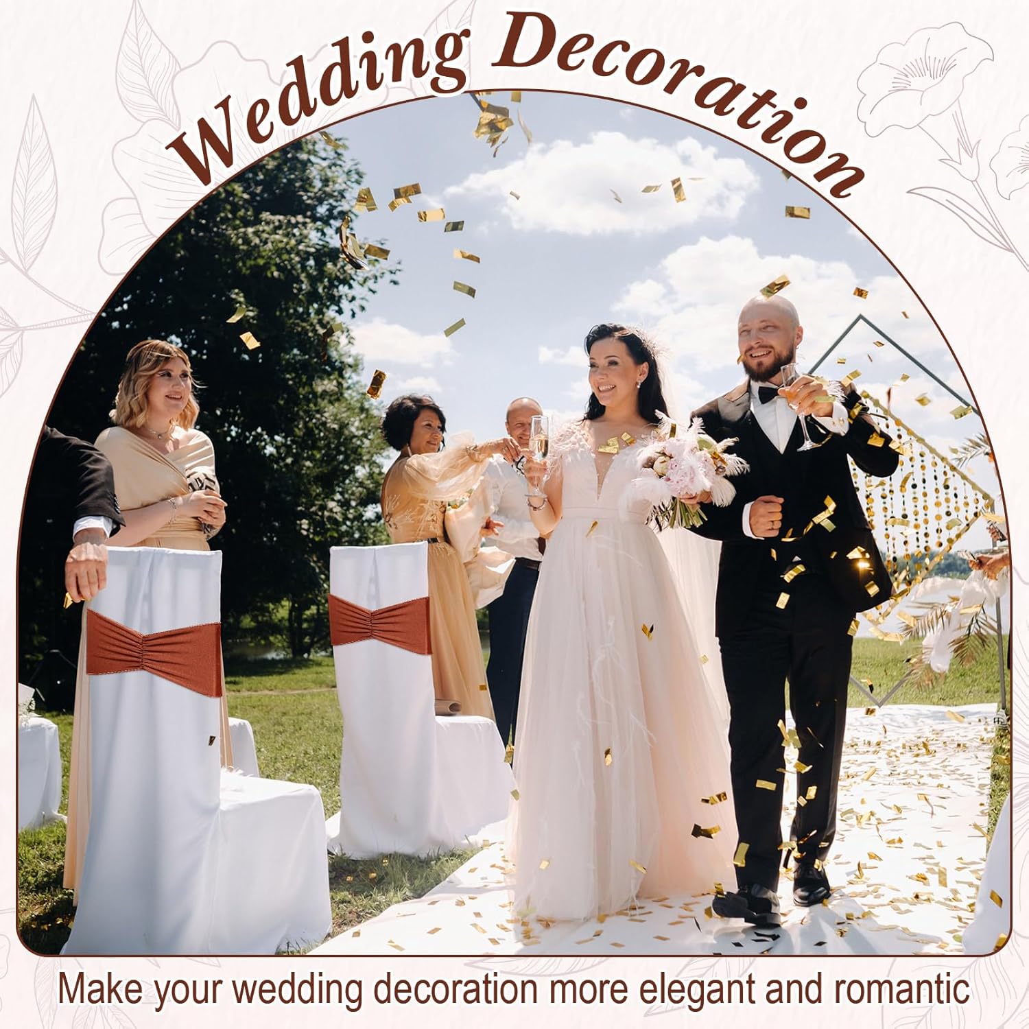 Moukeren 100 Pcs Spandex Chair Sashes Bows Bands Slider Sashes for Chair Covers Elastic Bands Ties Ribbon Decorations for Wedding Party Events Ceremony Birthday Banquet(Terracotta)