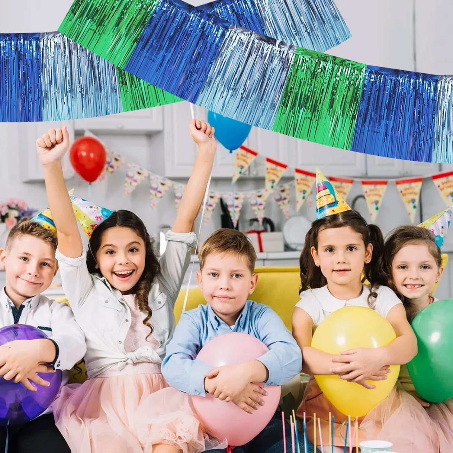 BEISHIDA 3 Packs Metallic Foil Fringe Garland Blue Green Wall Hanging Tinsel Fringe Banners for Car Floats Bridal Shower Wedding Birthday Easter Graduation Holiday Party Decoration(30 Feet)