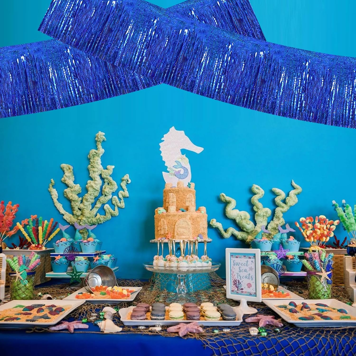 BEISHIDA 3 Packs Metallic Foil Fringe Garland Laser Blue Wall Hanging Tinsel Fringe Banners for Car Floats Bridal Shower Wedding Birthday Easter Graduation Holiday Party Decoration(30 Feet)
