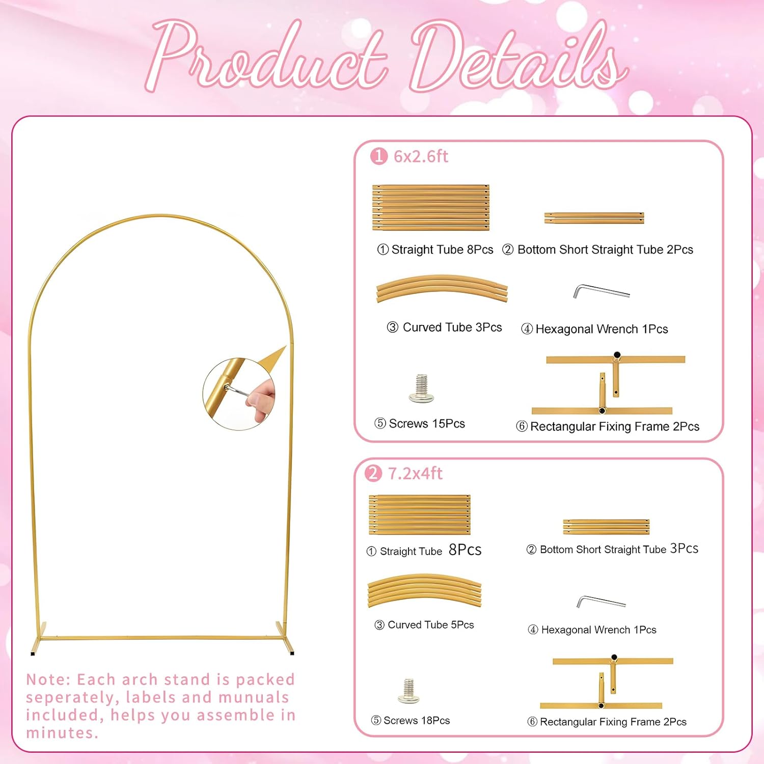 - 【Versatile Decoration Kit】-2pcs arch backdrop stands comes in different sizes: 7.2x4ft, 6x2.6ft, and elegant door shape enables you to DIY your party decoration with versatility and creativity