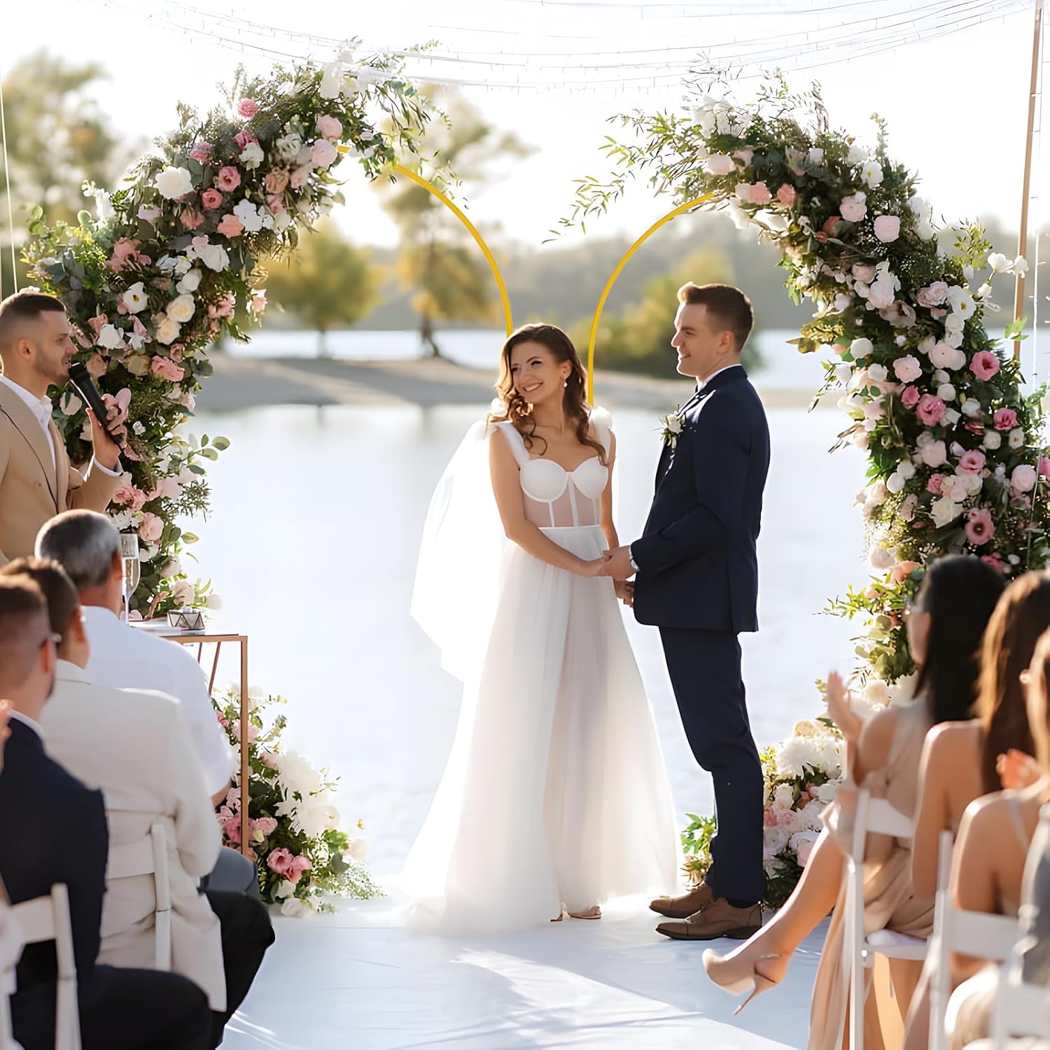 - 【Fantastic Backdrop Stand】- Gold arch backdrop stand, nice to decorate with flowers, balloons, string lights and any other ornaments, will surely make an impressive and beautiful party backdrop for wedding, Christmas, Thanksgiving, birthday party, baby shower, bridal shower, graduation photography decorations