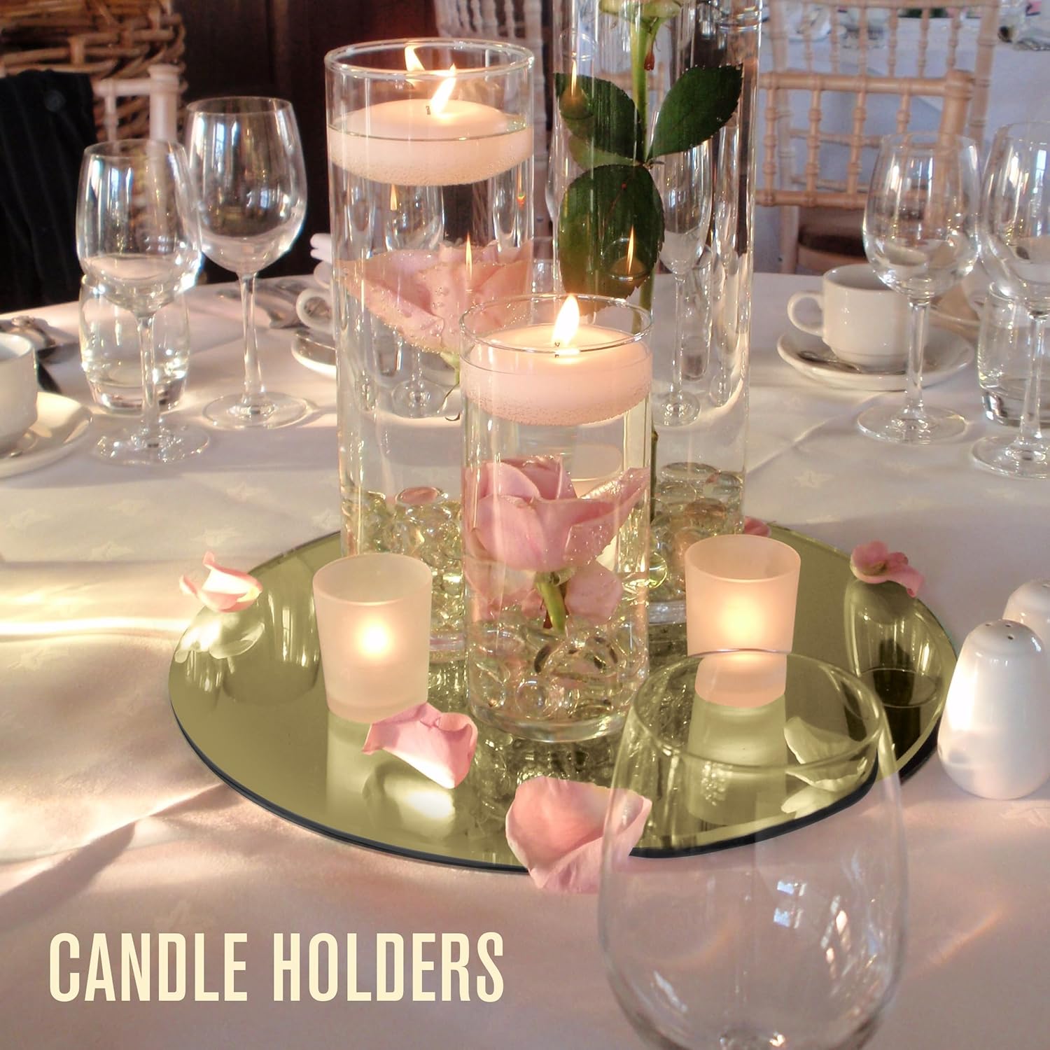 - A WEDDING TO REMEMBER: Our mirror table centerpieces make for great table decor at any wedding. Placing themed items atop the mirror plate allows the mirror to give them a delicate look that also highlights their details.