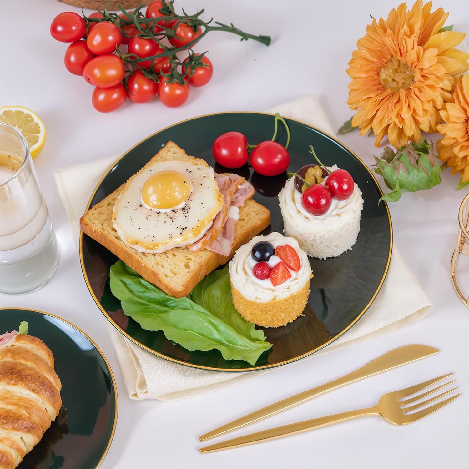 - Elegant and fashionable: These green party plates used for gatherings are decorated with golden retro rims, which are very exquisite and beautiful. With a smooth surface and elegant golden rim, our green plates disposable can add an elegant atmosphere to your party, making your celebration visually more appealing and easily adaptable to any occasion. β