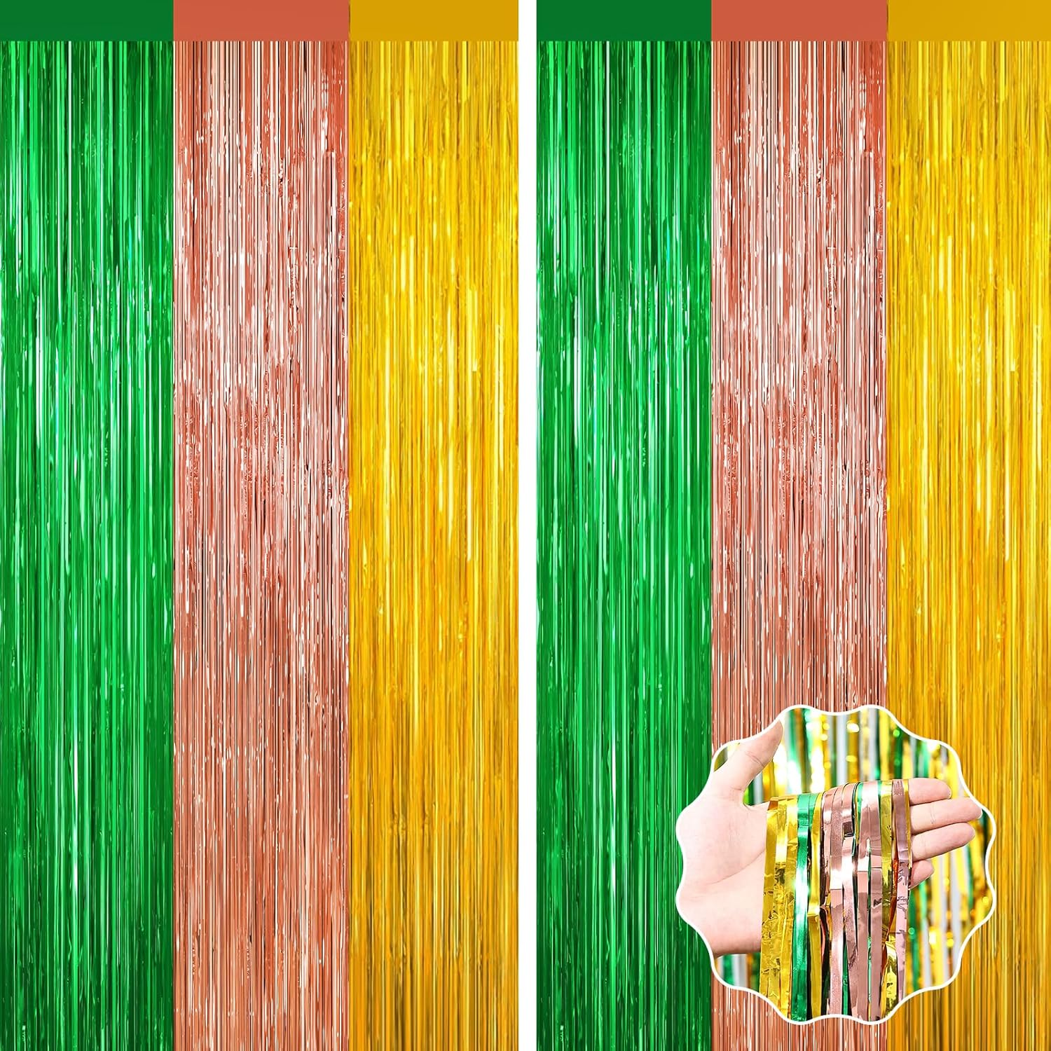 - Foil Fringe Backdrop: Includes 2 packs shiny Green foil fringe curtains, enough quantity for your party decoration. Each pack curtains size is 3.3 ft x 6.58 ft, enough length for decorate your party. Perfect accessories for decorating doors and walls. for creating a stunning backdrop for any occasion. shimmer tinsel backdrop curtain, you can make a beautiful entrance door curtain or a photo booth backdrop for your guests. They are perfect for christmas party.