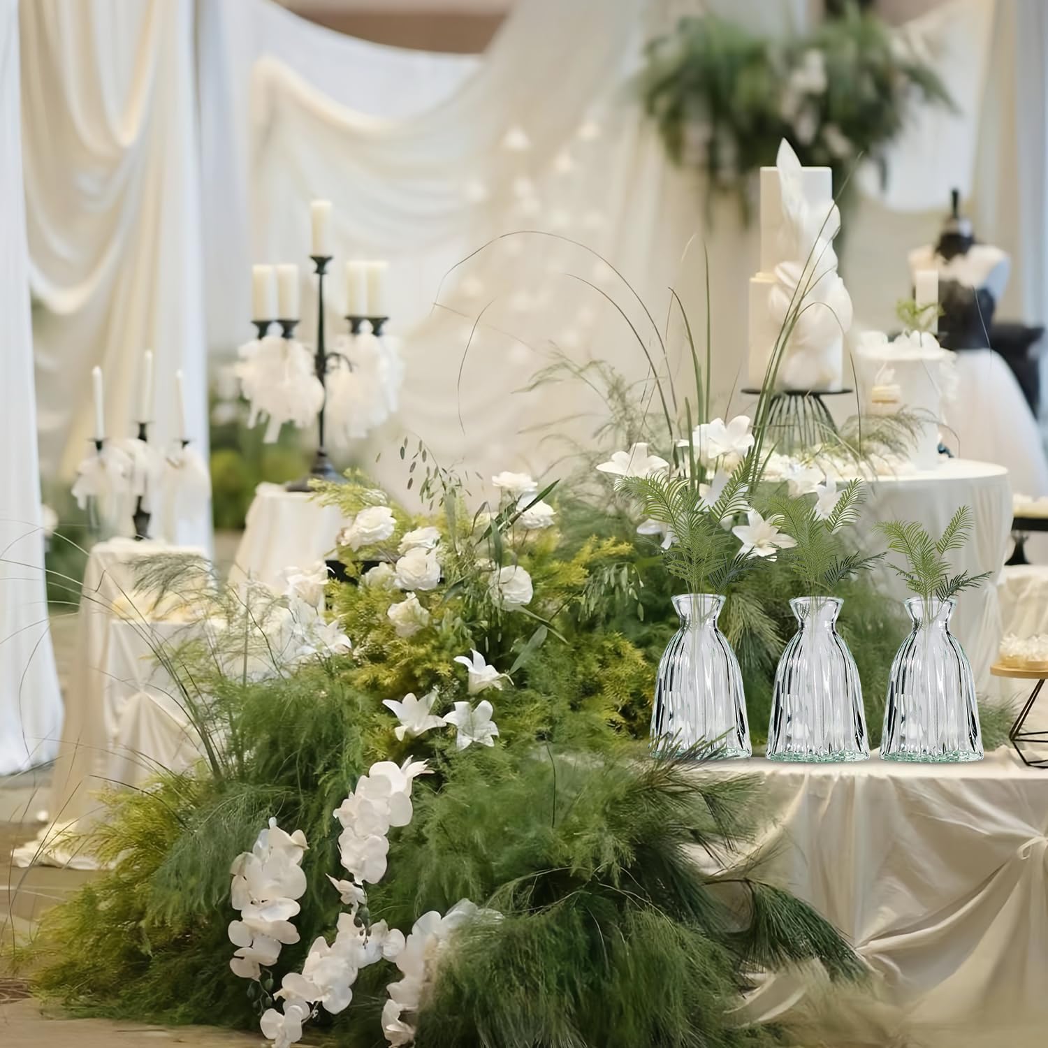 - VERSATILE DESIGN: Each small clear vase has a beautiful embossed pattern,suitable for all seasons, various sizes and shapes, smooth lines,you can mix and match flowers with elegant vases as you like, velvet flowers and dried flowers are also good choices.