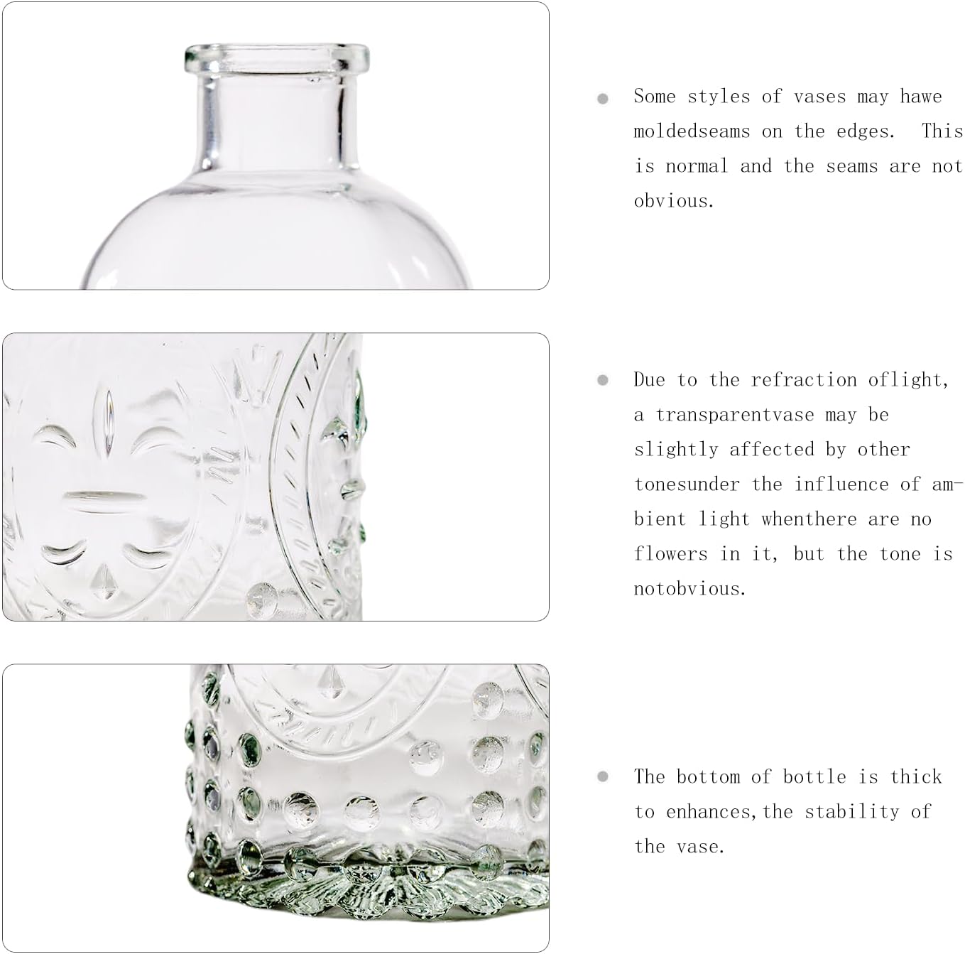 - VERSATILE DESIGN: Each small clear vase has a beautiful embossed pattern,suitable for all seasons, various sizes and shapes, smooth lines,you can mix and match flowers with elegant vases as you like, velvet flowers and dried flowers are also good choices.