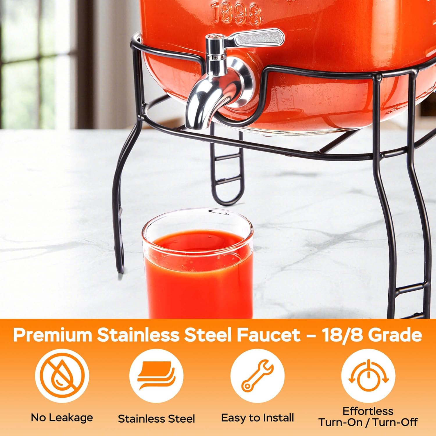 - Large Capacity for Continuous Serving - Each dispenser holds 2 gallons—twice the size of most 1-gallon dispensers on the market. These large glass drink dispensers for parties are perfect for weddings, BBQs, and family gatherings, allowing multiple guests to enjoy drinks without the need for constant refills.