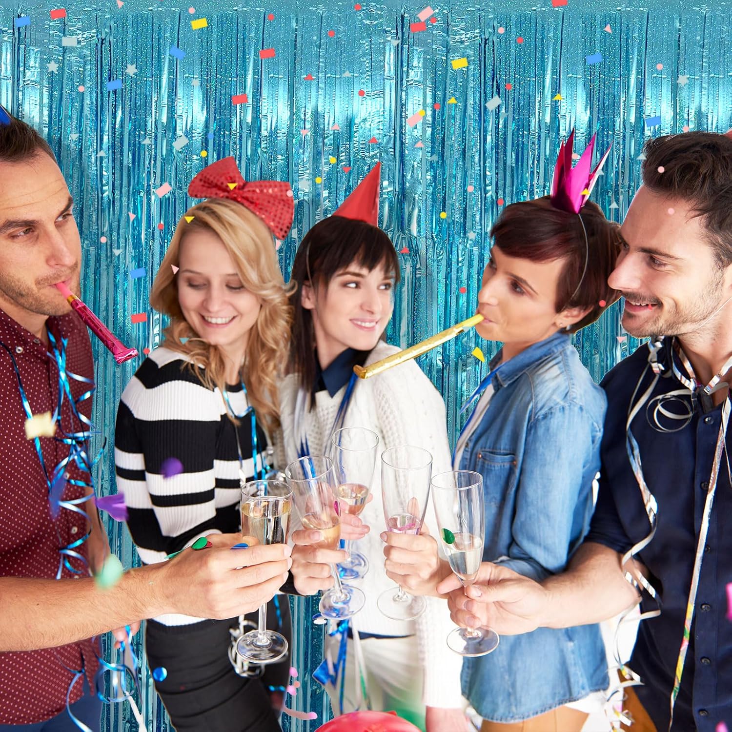 - Material: This high-quality tinsel curtain is crafted from shimmering metallic tinsel, creating a dazzling blue backdrop or vibrant colored display. Its reflective surface enhances any space as a stunning shimmer wall backdrop, perfect for parties and events. Fade-resistant, reusable, and instantly transformative.