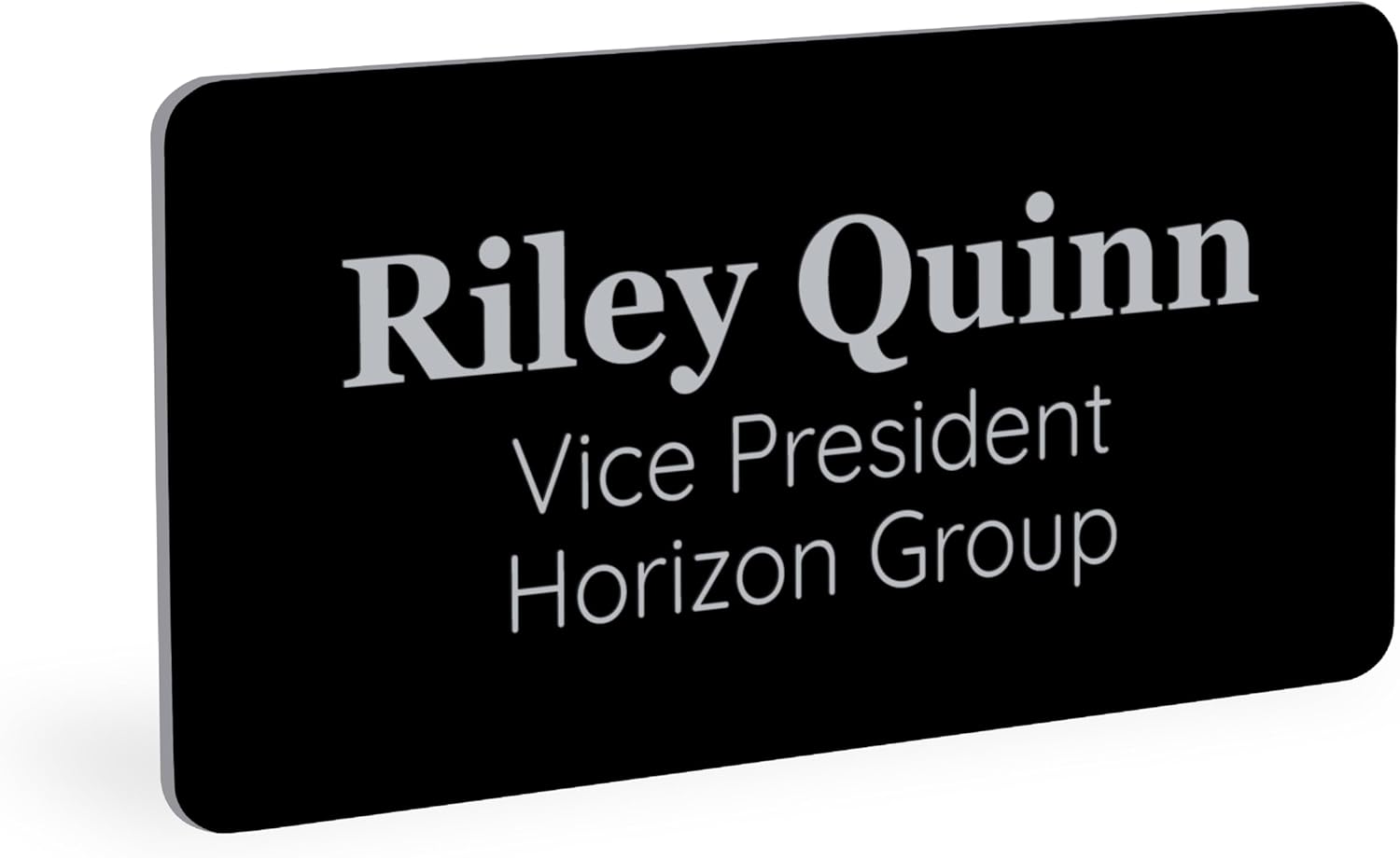- PROFESSIONAL NAME BADGE: Our classic engraved name badge provides a professional look perfect for businesses. Select your size, color, and corner style to make the perfect name badge for your business.