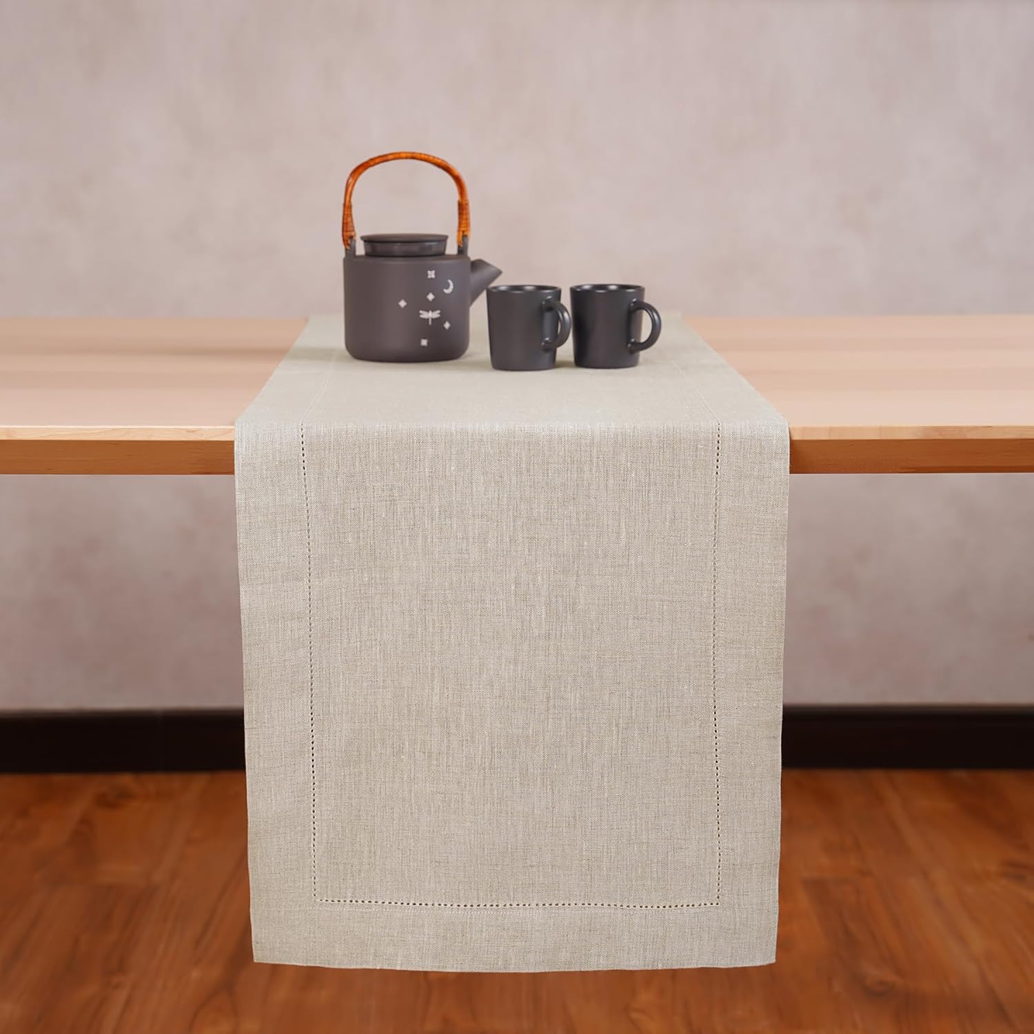 Linen Light Natural Table Runner 90 Inches - 100% Pure Linen Cloth Fabric Hemstitch Table Runner 14 x 90 Inch for Dining, Dresser, Thanksgiving, Fall Christmas - Lino
