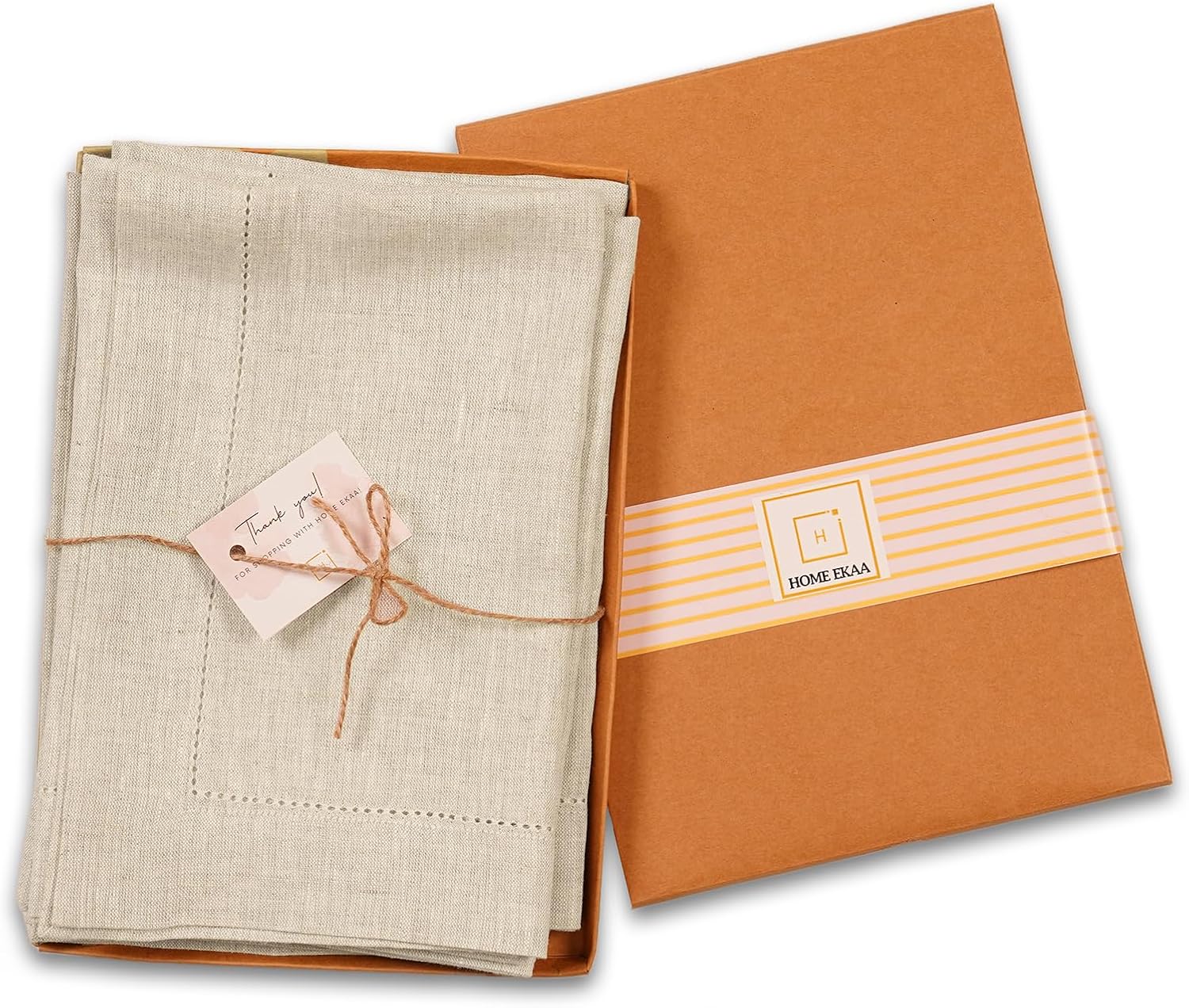 Linen Light Natural Dinner Napkins Set of 4-100% Pure Linen Cloth Fabric, Hemstitch Dinner Napkins 20 x 20 Inch for Dining, Dresser, Thanksgiving, Christmas, Fall - Lino