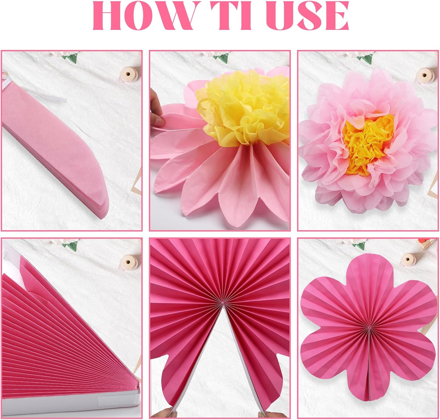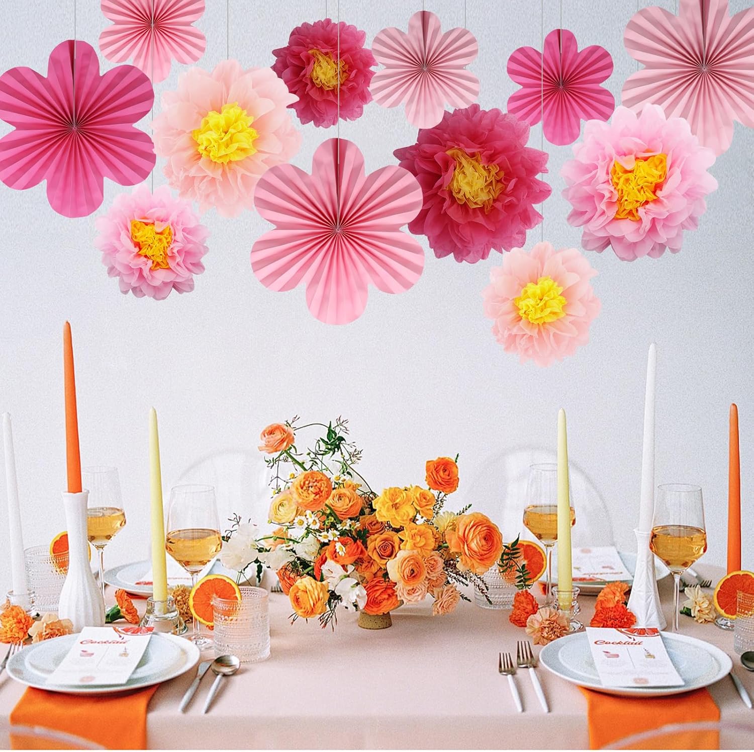 - Complete Decoration Set: Includes 6 flower pompoms (3 x 30cm, 3 x 25cm) and 6 flower fans (3 x 35cm, 3 x 25cm) in vibrant Hot Pink, perfect for any celebration.