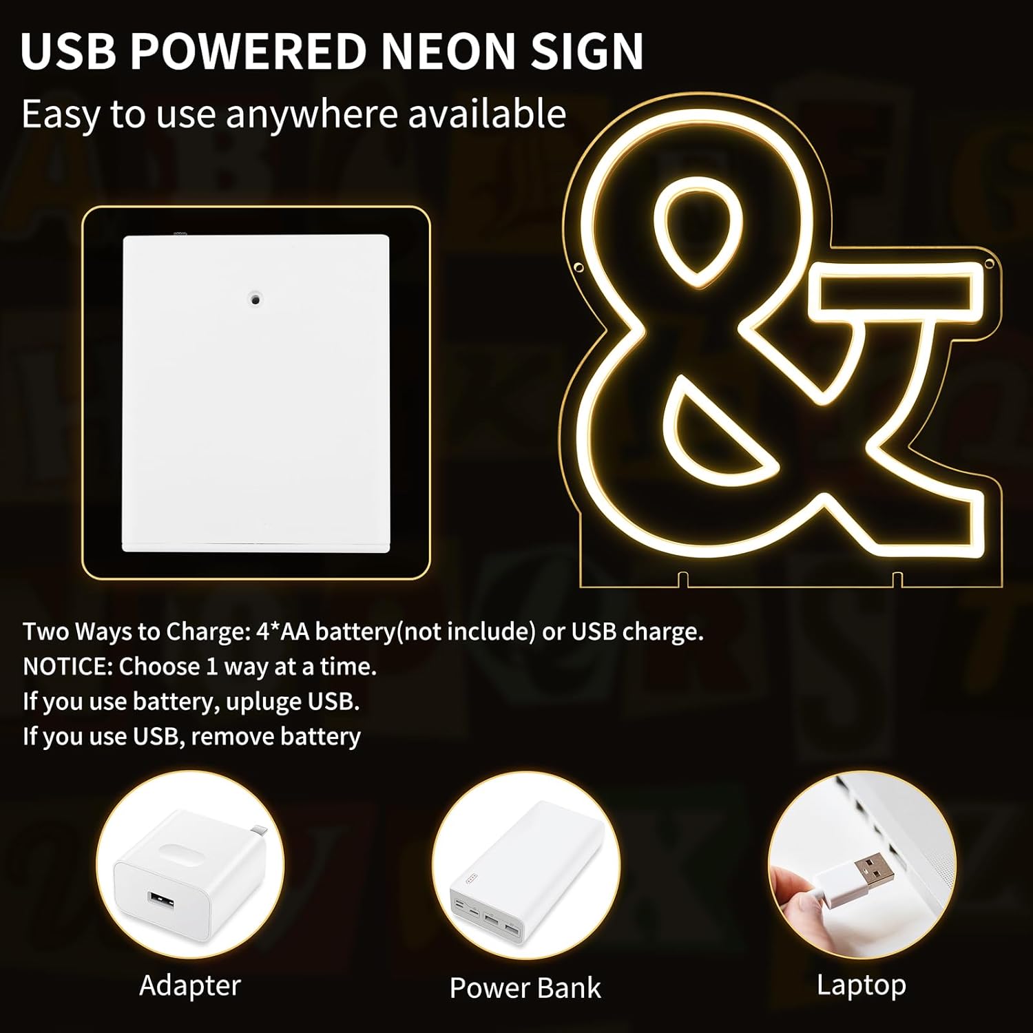 Light Up Letters &, Led Marquee Letter Lights Neon Sign, 13.9" Height Decorative Lighted Alphabet Number, Battery/USB Powered Led Letters Lights for Wedding, Birthday, Party, Christmas or Home Decor