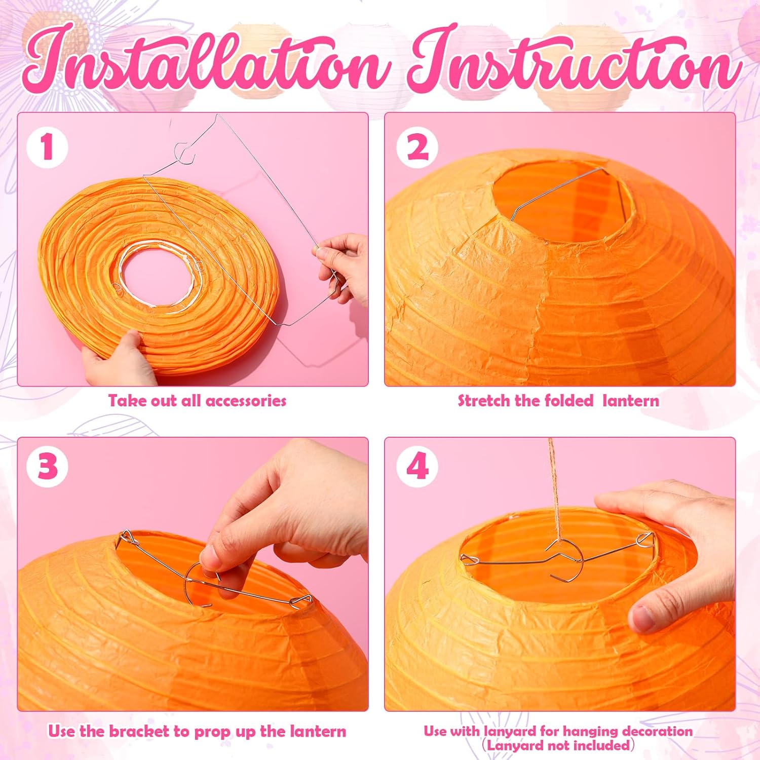 - Pink and Orange Color: brighten up your occasions with these colorful paper lanterns; These mixed size paper lanterns come in 3 colors: rose red, orange, and light pink; These vibrant colors add life to your events, be it a sunset themed party decoration or just a family gathering