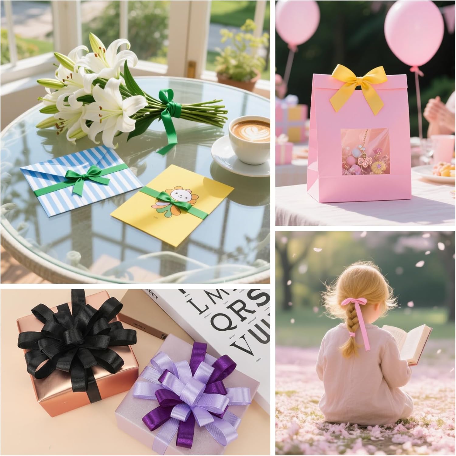 - π Wide Application: This ribbon can be used for packaging gift boxes, decorating wedding invitations, parties, making belts, bridal bouquets, sewing, corsets, DIY crafts, etc.you can also make different colored bow headbands to make your hair accessories look more fashionable and charming.