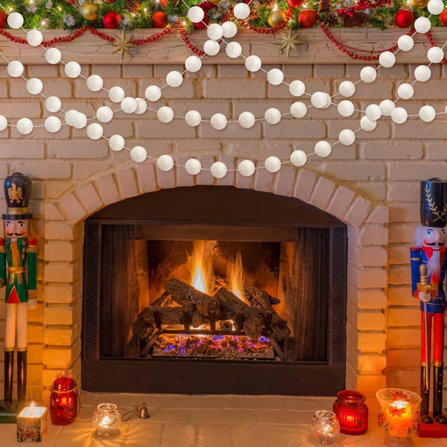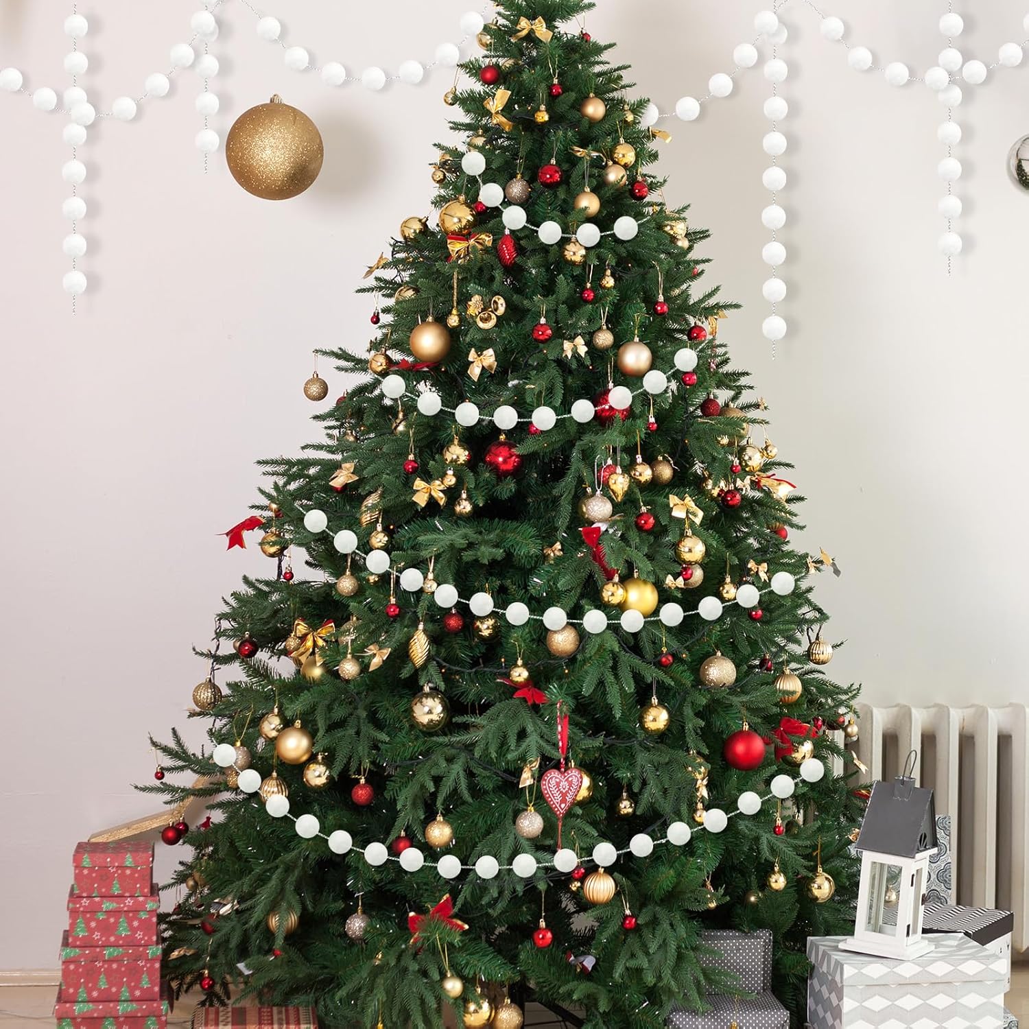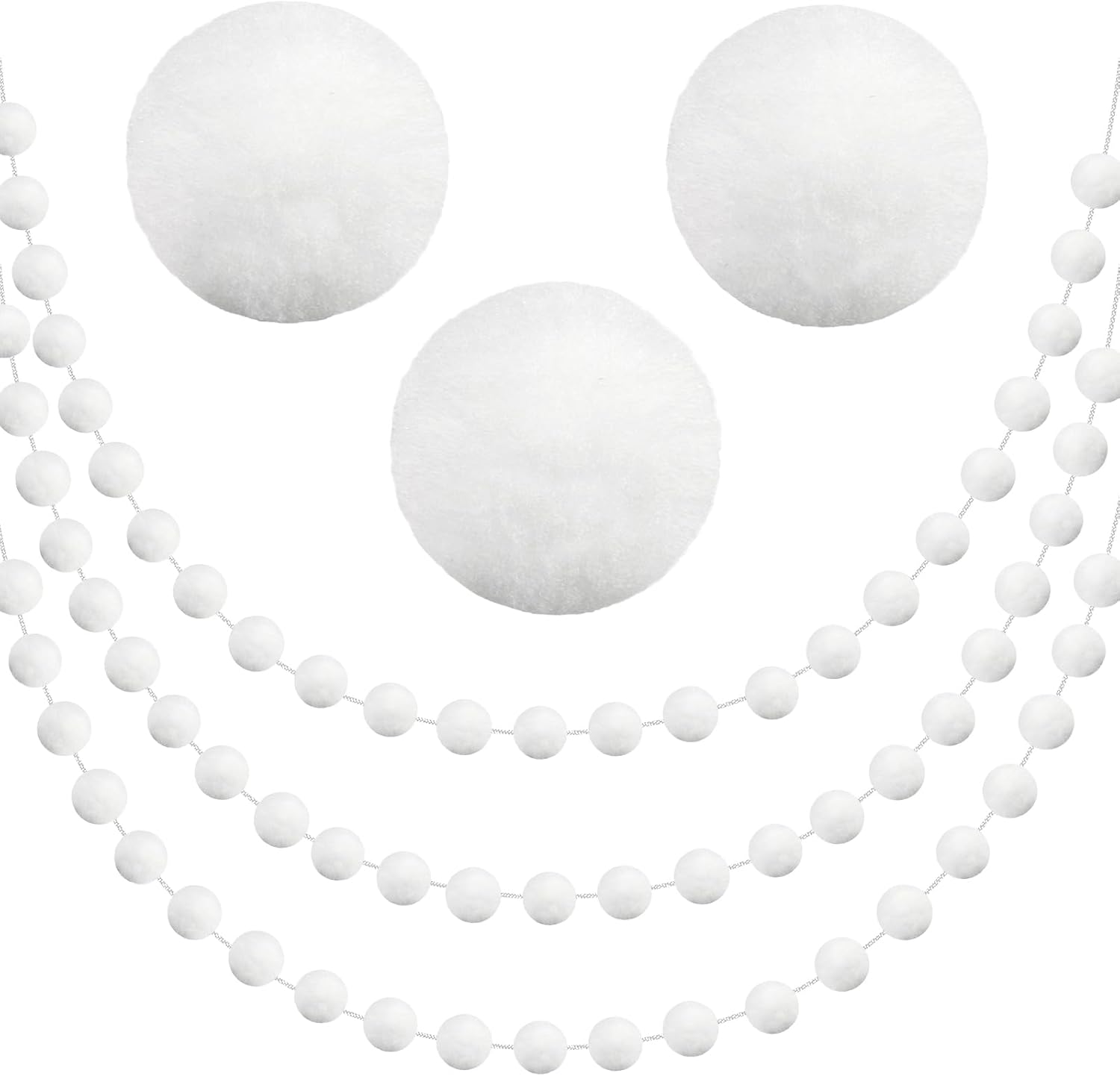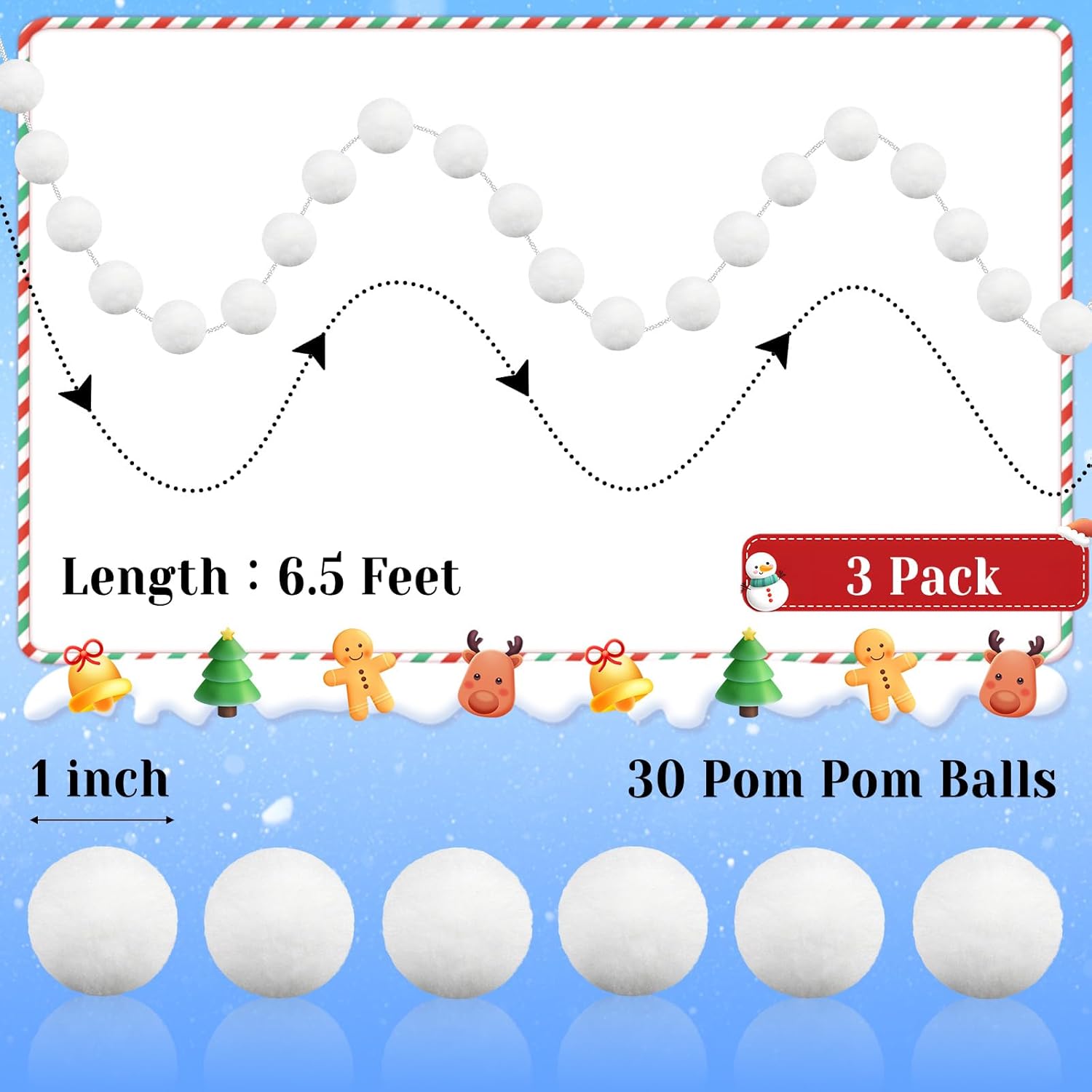 3 Pack Pom Pom Garland Colorful Felt Ball Garland Decorations, 6.5 Feet Long with 30 Balls Banner Hanging Supplies for Christmas, Birthday, Parties (White)