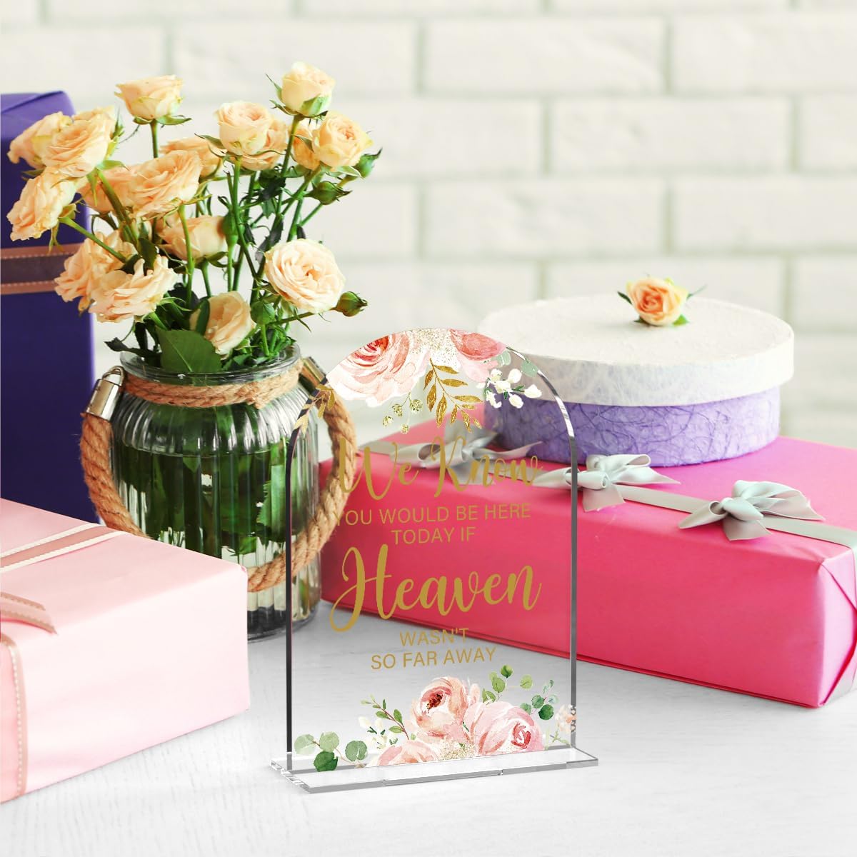 Acrylic Wedding Signs, Bridal Shower Decorations, Modern Calligraphy Arch Acrylic Table Top Sign for Wedding Reception and Engagement Parties - We Know You Would be Here Today (Clear Pink Flowers)
