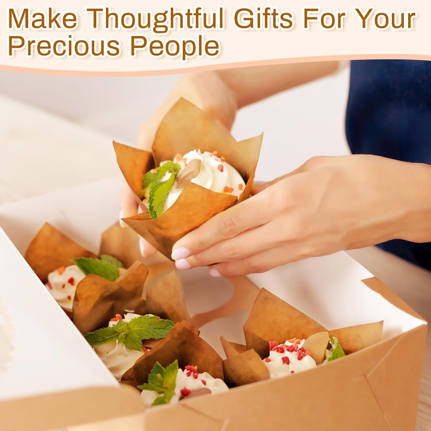 - Quality Greaseproof Paper: crafted with quality greaseproof paper, these tulip muffin liners offer grease resistance; Feel the difference in your baking experience as they can withstand high heat temperatures, avoid easy deformation or fading, and can be stored over a long period
