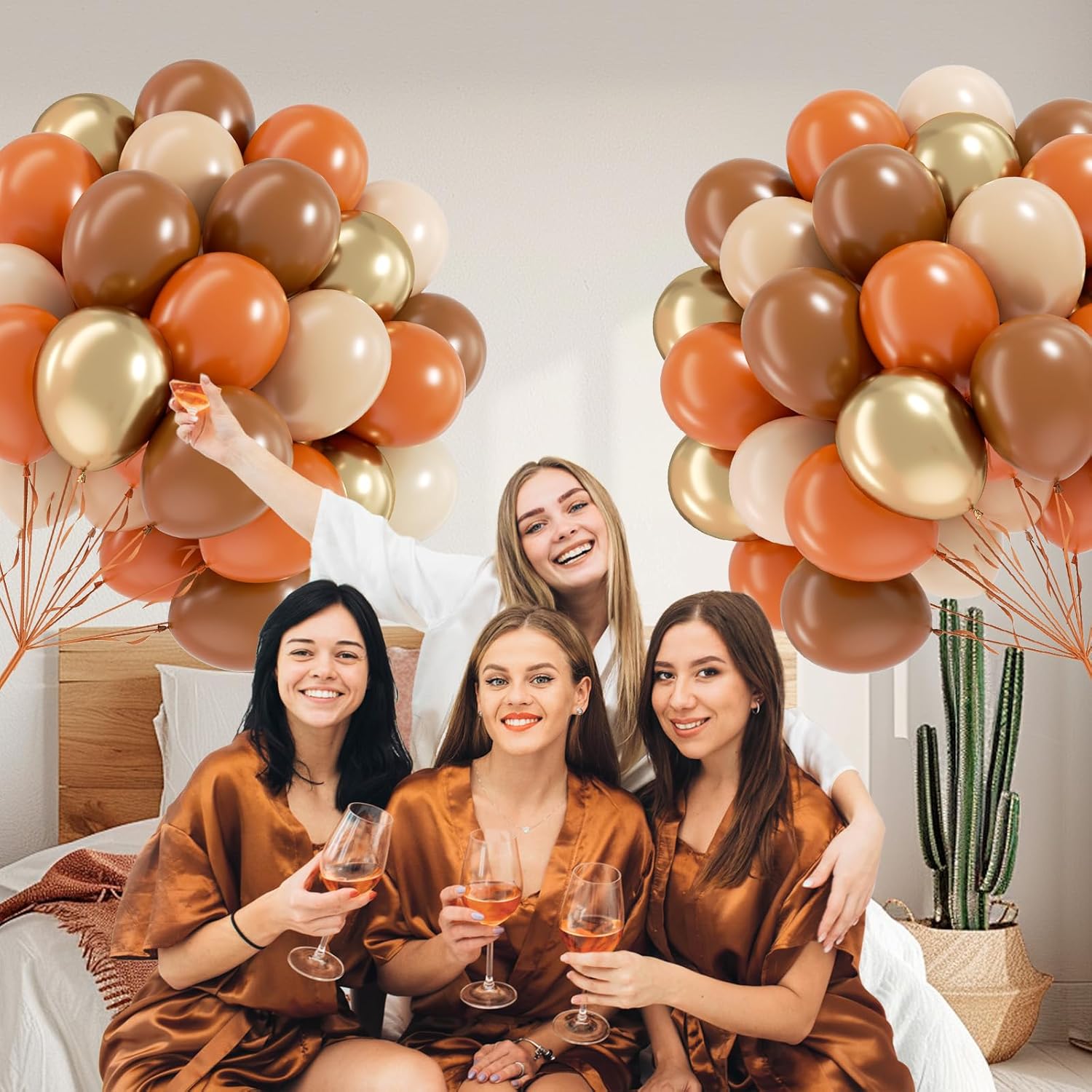 - Package Include: The fall balloons include 12inch burnt orange balloonsx20, 12inch brown balloonsx15, 12inch sand white balloonsx10, 10inch nude balloonsx10, 10inch metallic gold balloonsx5, orange ribbonx1, glue dotsx20