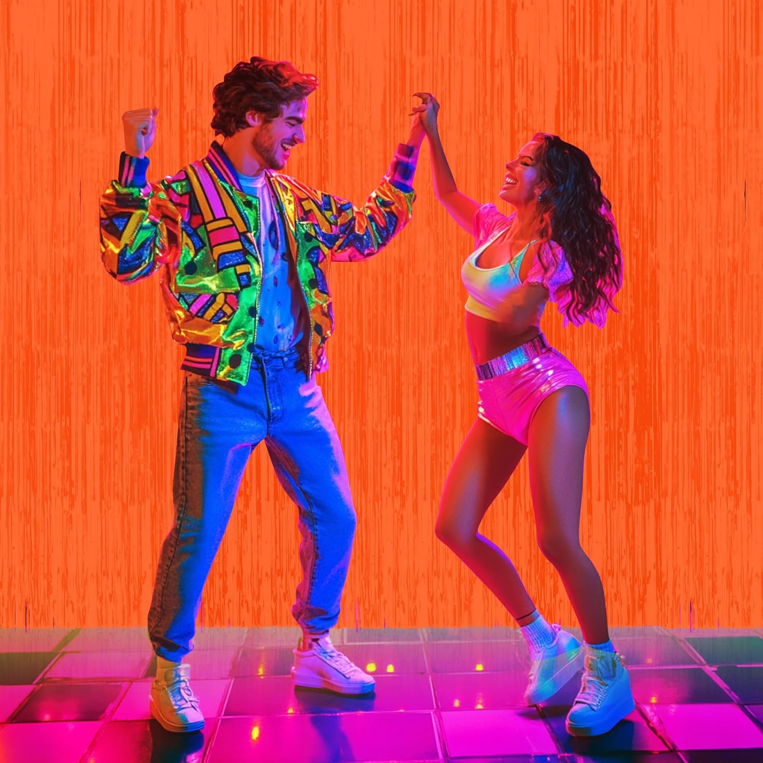 - What’s Inside: Included in the package are 3 orange glow in the dark foil fringe curtains, each measuring 3.3 x 6.6 ft, making them suitable for decorating most scenes. Perfect for creating an impressive neon backdrop for neon birthday party decorations and glow in the dark party supplies