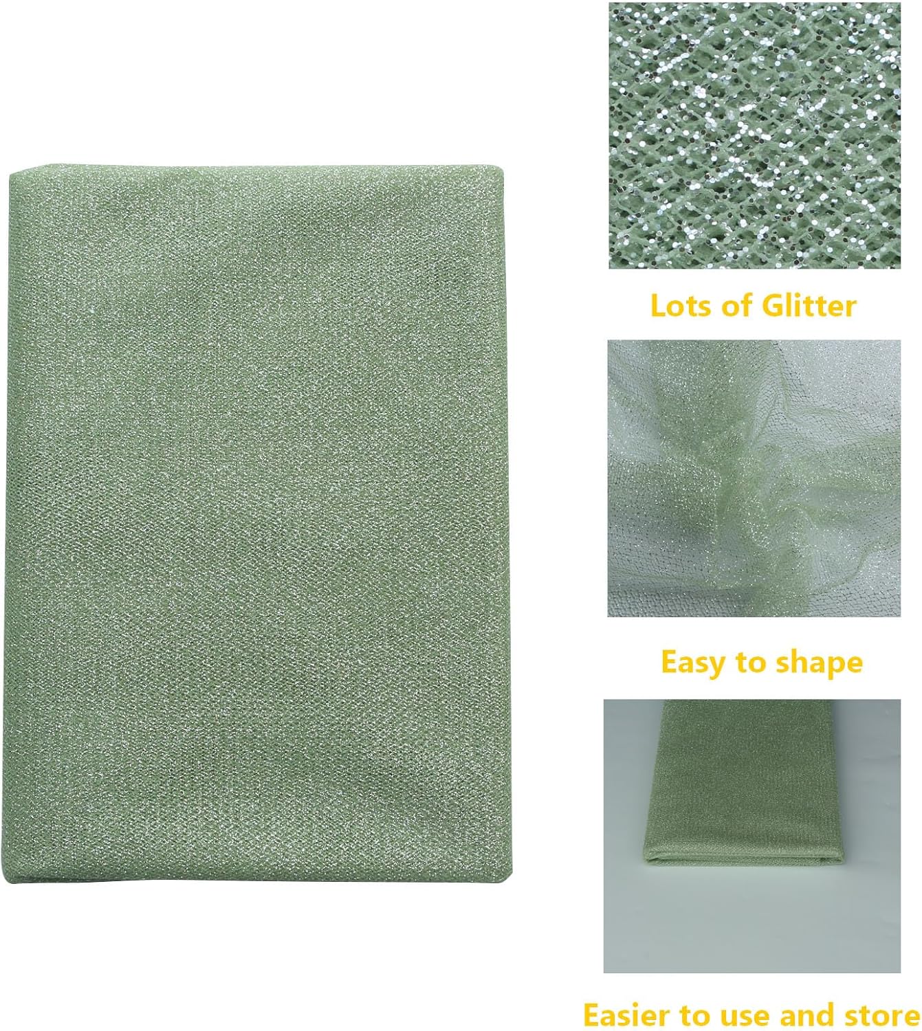Glitter Tulle Fabric 56 Inch by 5.5 Yards Fabric Tulle Bolt for Wedding Christmas Decorations DIY White Tutu Baby Shower Table Skirt Ceiling Decor Birthday Party Craft Supplies-Mint Green