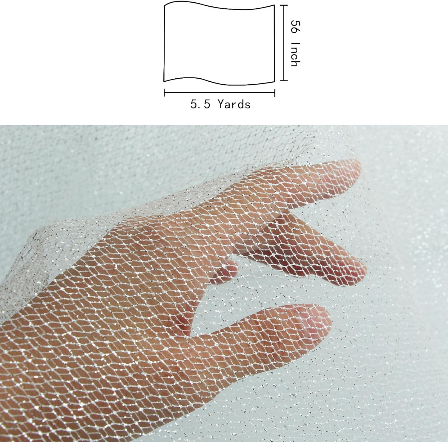 Glitter Tulle Fabric 56 Inch by 5.5 Yards Fabric Tulle Bolt for Wedding Christmas Decorations DIY White Tutu Baby Shower Table Skirt Ceiling Decor Birthday Party Craft Supplies-White