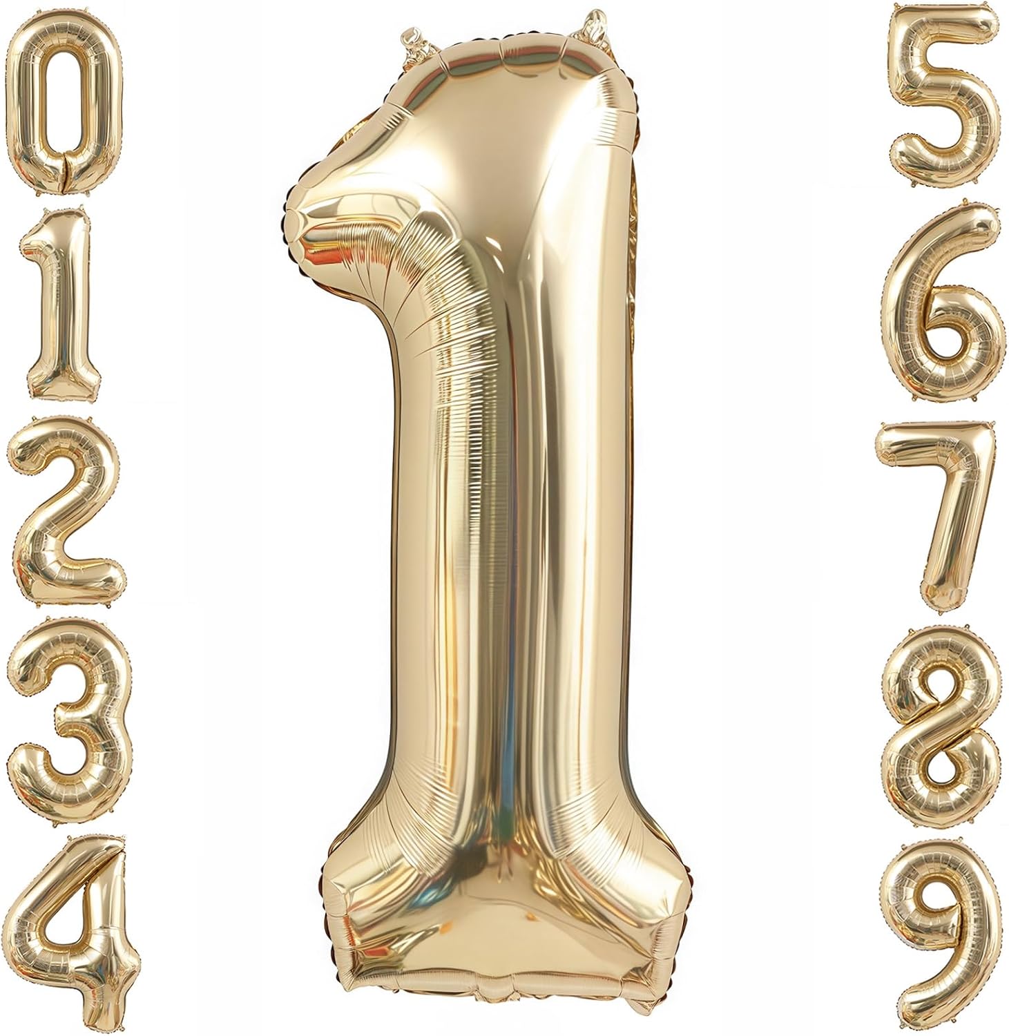 Champagne Gold 1 Balloon,40 Inch Light Gold Number 1 Balloon Big Foil Mylar Helium 1 Balloon for Birthday Party