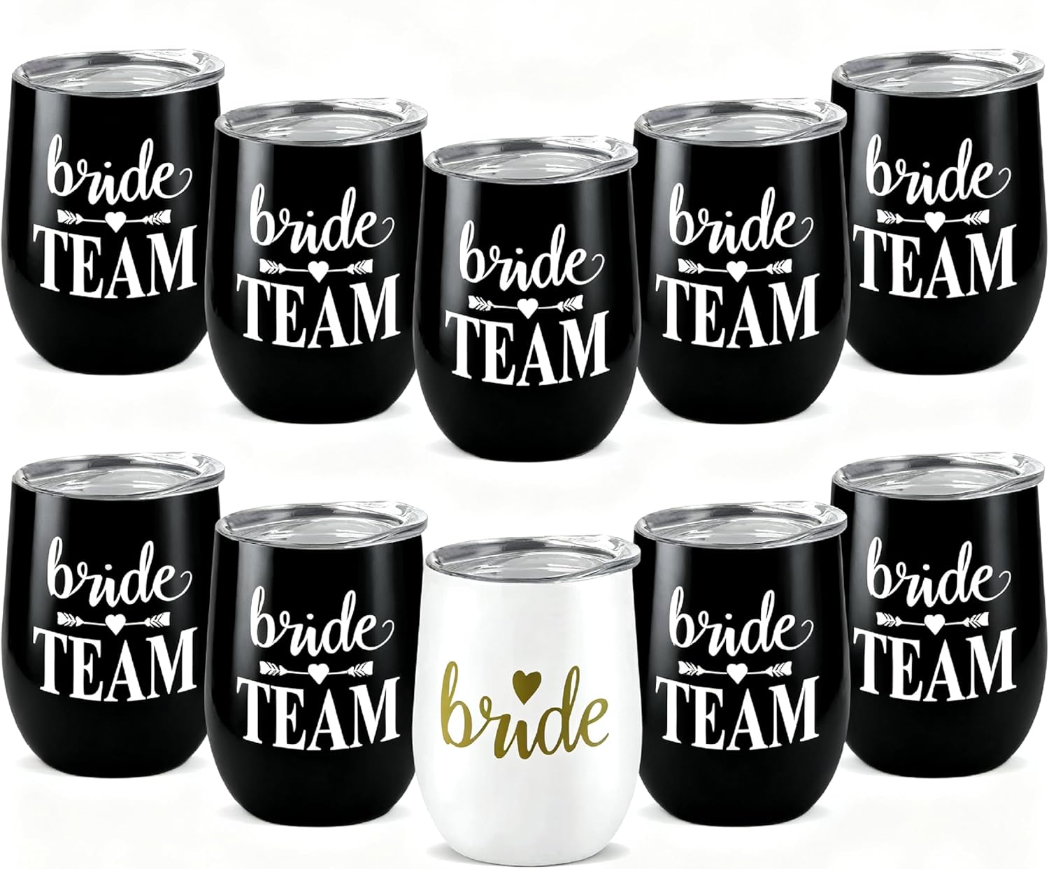 - 【Bachelorette Party Gifts】Designed for bachelorette parties, bridesmaids and brides, you will receive 10 tumblers with lids and straws , including 1 bride tumbler and 9 bride Team tumblers to celebrate, which are ideal bachelorette party bridal gifts