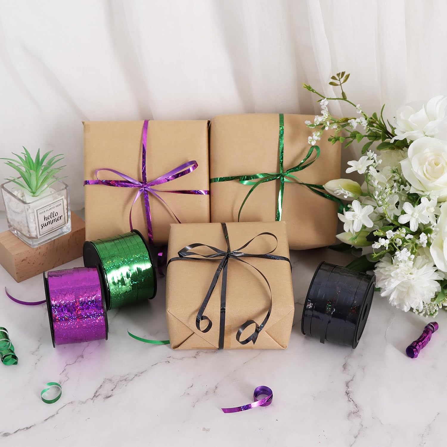 - Wide range of usage: you can apply the curling ribbon for crafts making, wedding party, scrapbooking, Christmas decoration, Halloween party, flowers, gift wrapping, DIY and any other occasions