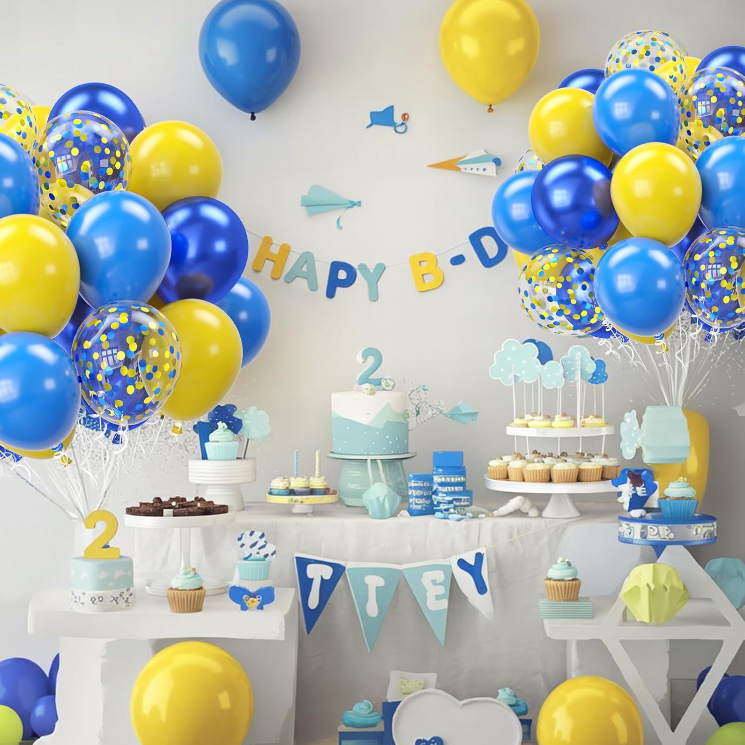 Yellow Blue Balloons, 12 Inches Blue Yellow Balloon Double Stuffed Metallic Blue Balloons with Confetti Ballons for Birthday Graduation Baby Shower Party Decoration