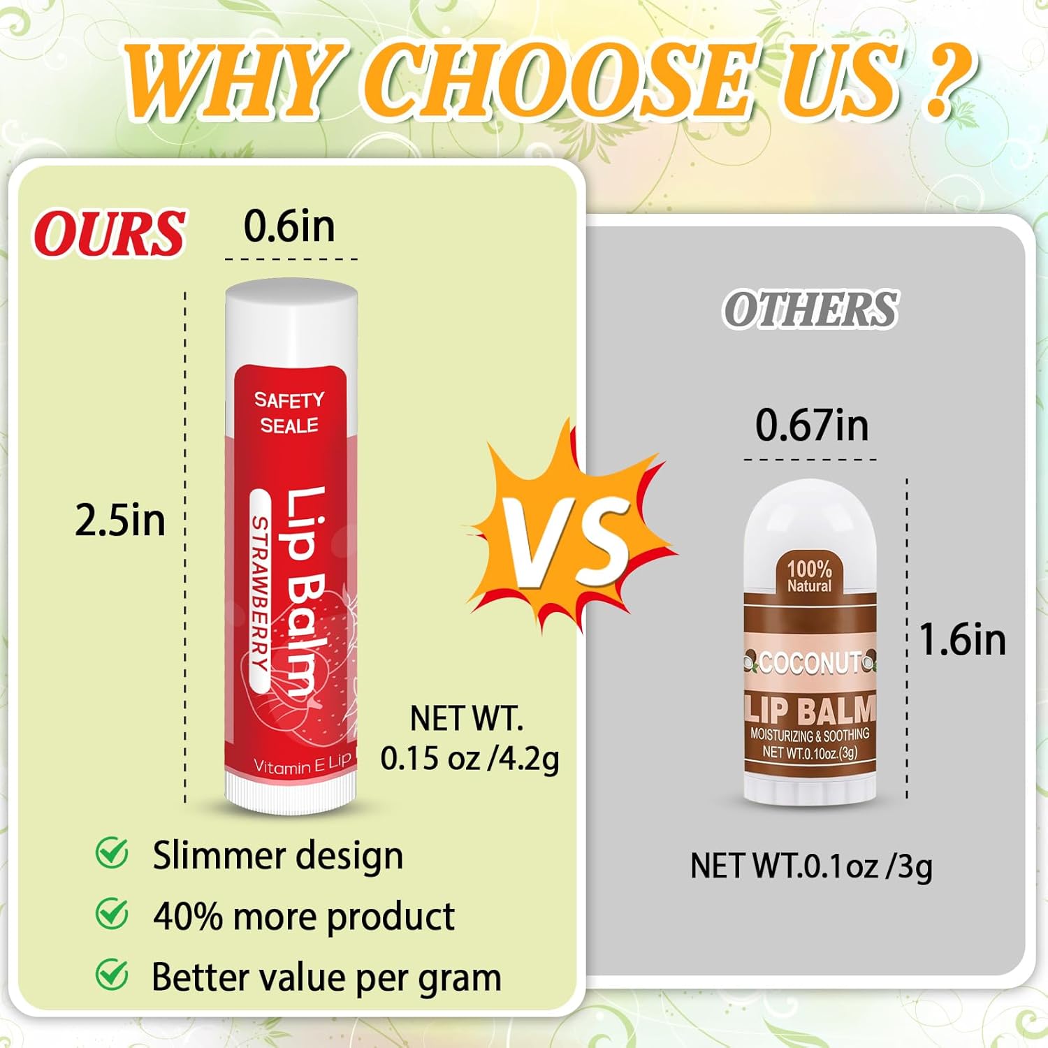 Yopela 42 Pack Natural Lip Balm Bulk with Vitamin E and Coconut Oil - Moisturizing, Soothing, and Repairing Dry and Chapped Lips Valentine's Gift - 14 Flavors - Non-GMO