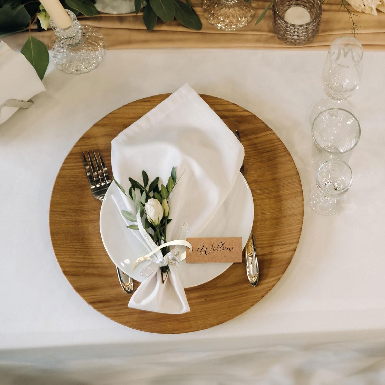 - Blank Name Card Tags Set: you will receive 50 blank textured kraft paper name cards and 50 pre cut beige satin ribbons, which are sufficient to meet the needs of any event you hold; It is an ideal banquet table setting supplement