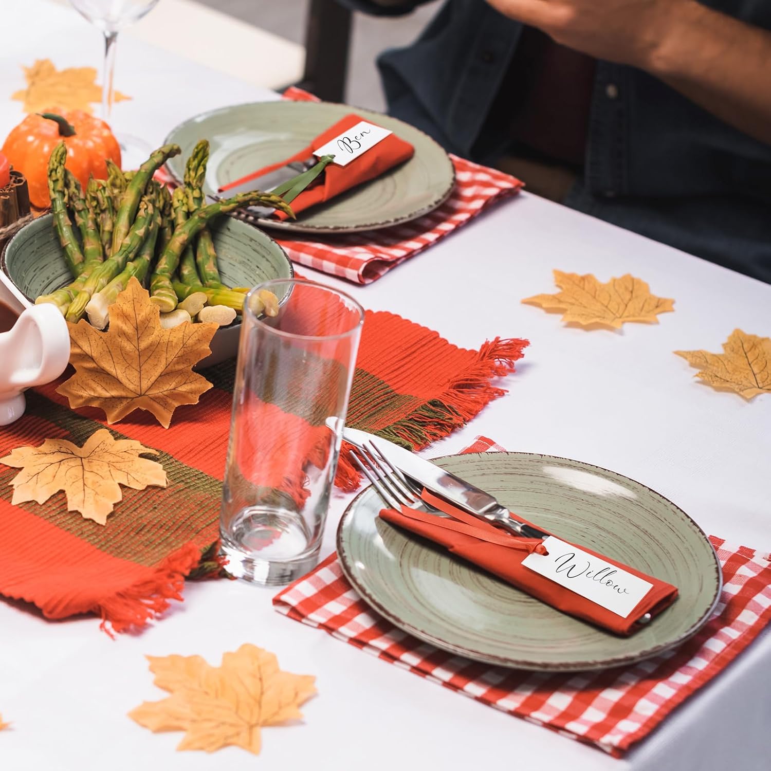 - Blank Name Card Tags Set: you will receive 50 blank textured paper name cards and 50 pre-cut autumn colors: green and orange satin ribbons, which are sufficient to meet the needs of any event you hold; It is an ideal banquet table setting supplement