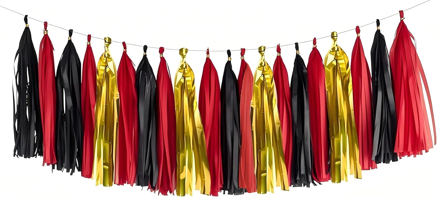 Gold, red, and Black Tissue Tassel Garlands, Party Decoration Tissue Tassel Banner, Set of 15 Pieces